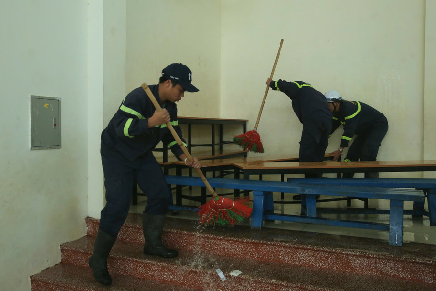 Lực lượng chức năng khẩn trương hỗ trợ người dân, trường học sau bão lũ.