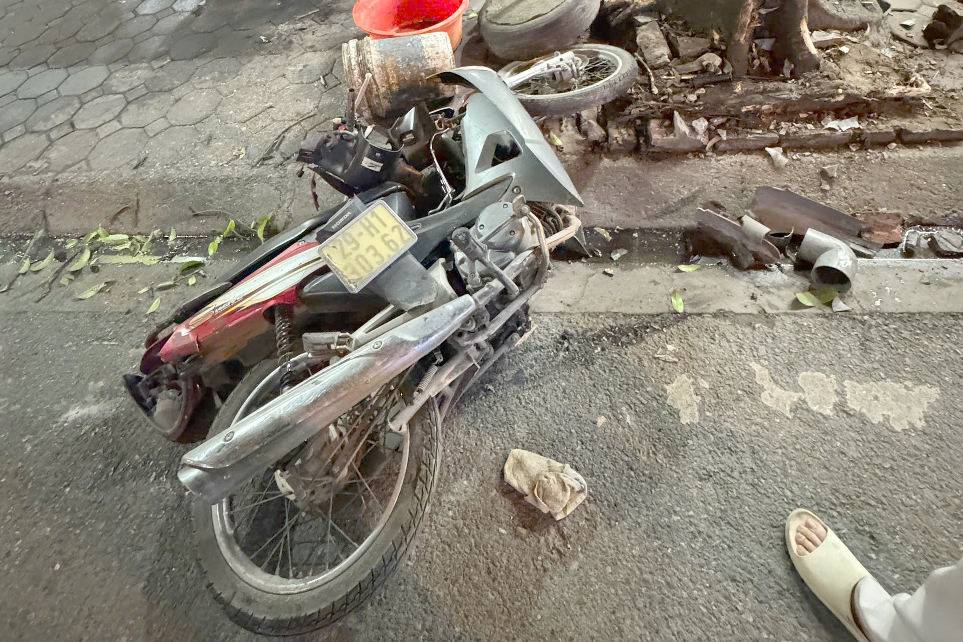 Chiếc xe máy biến dạng sau vụ tai nạn.