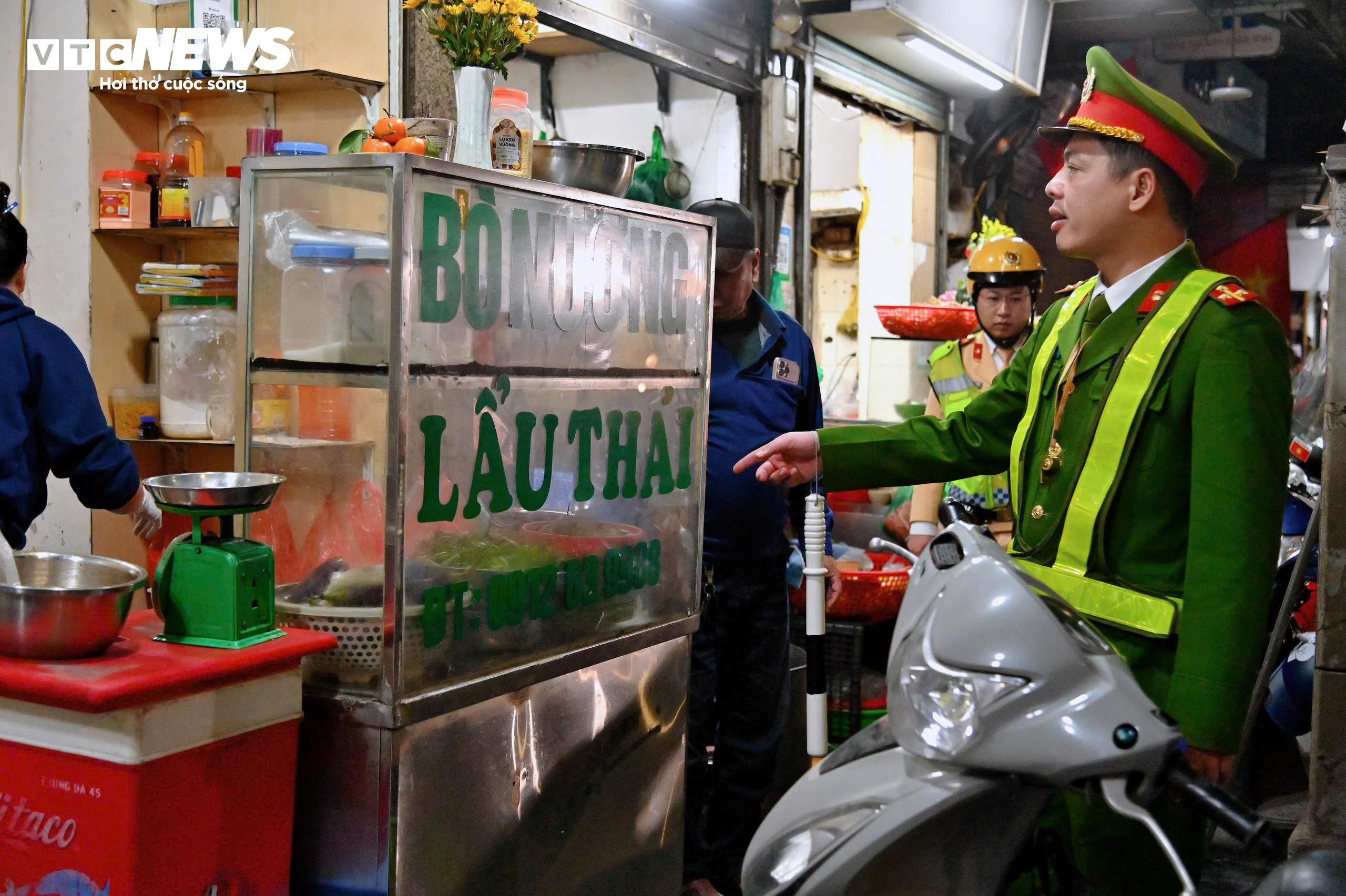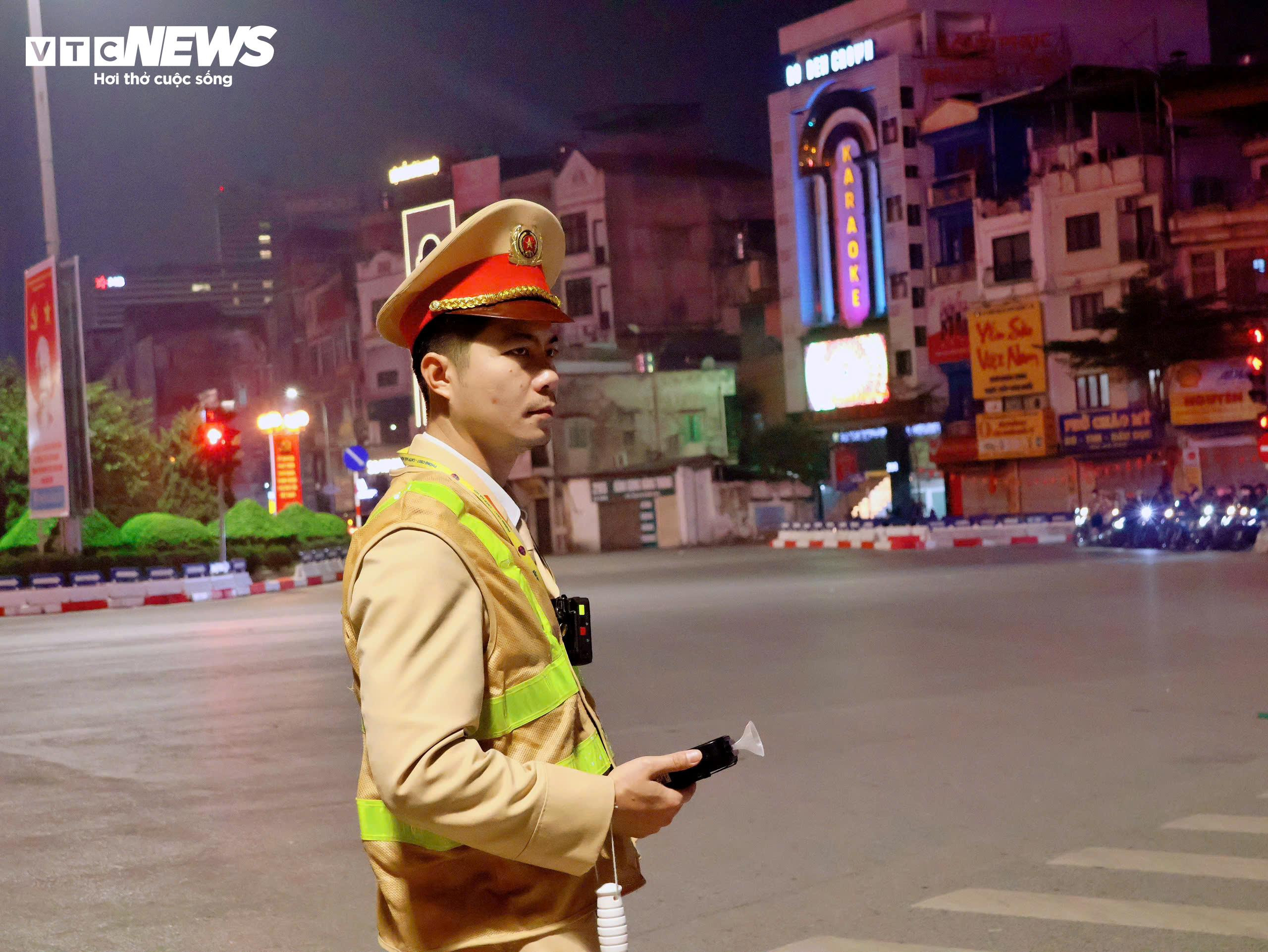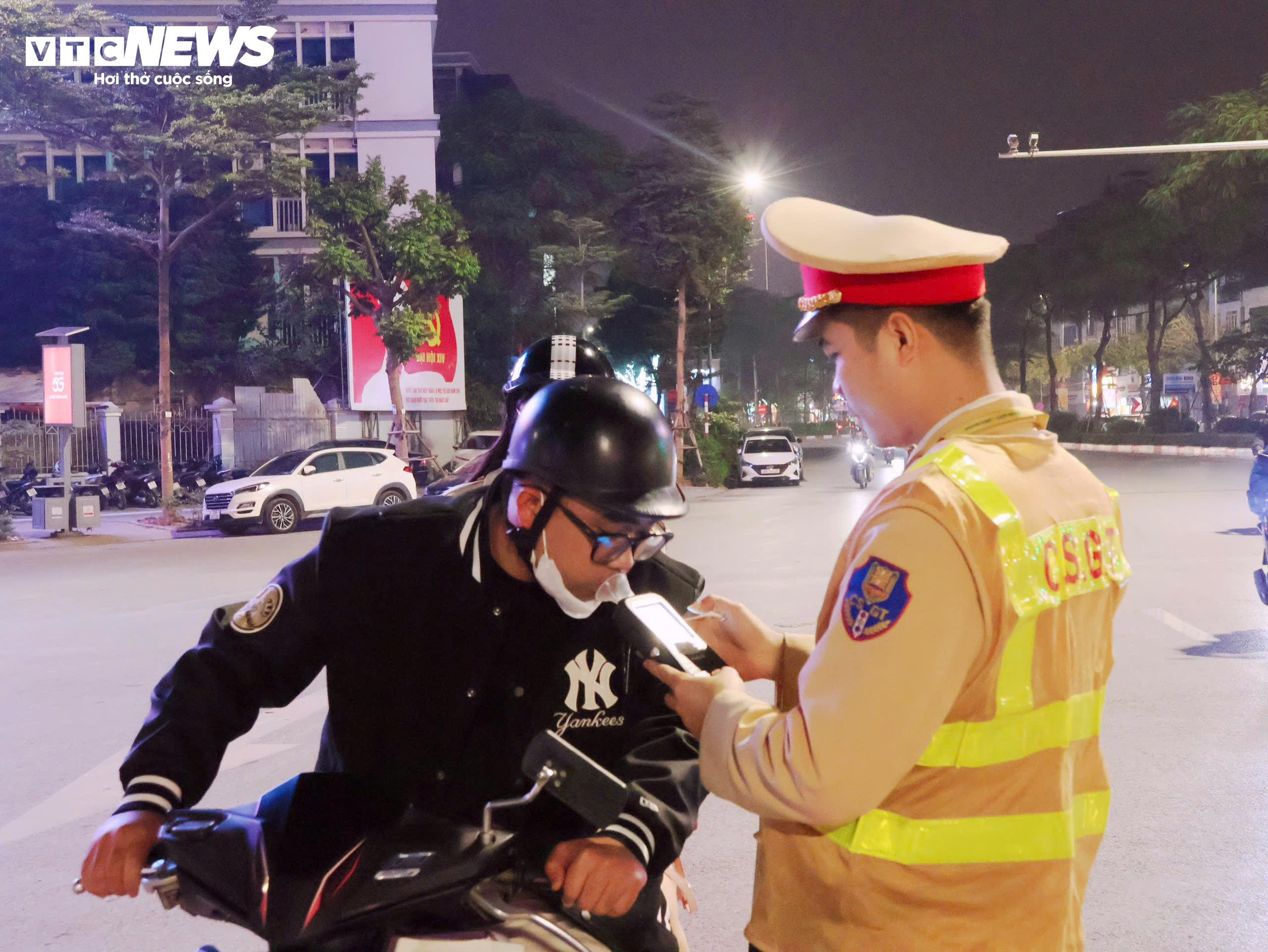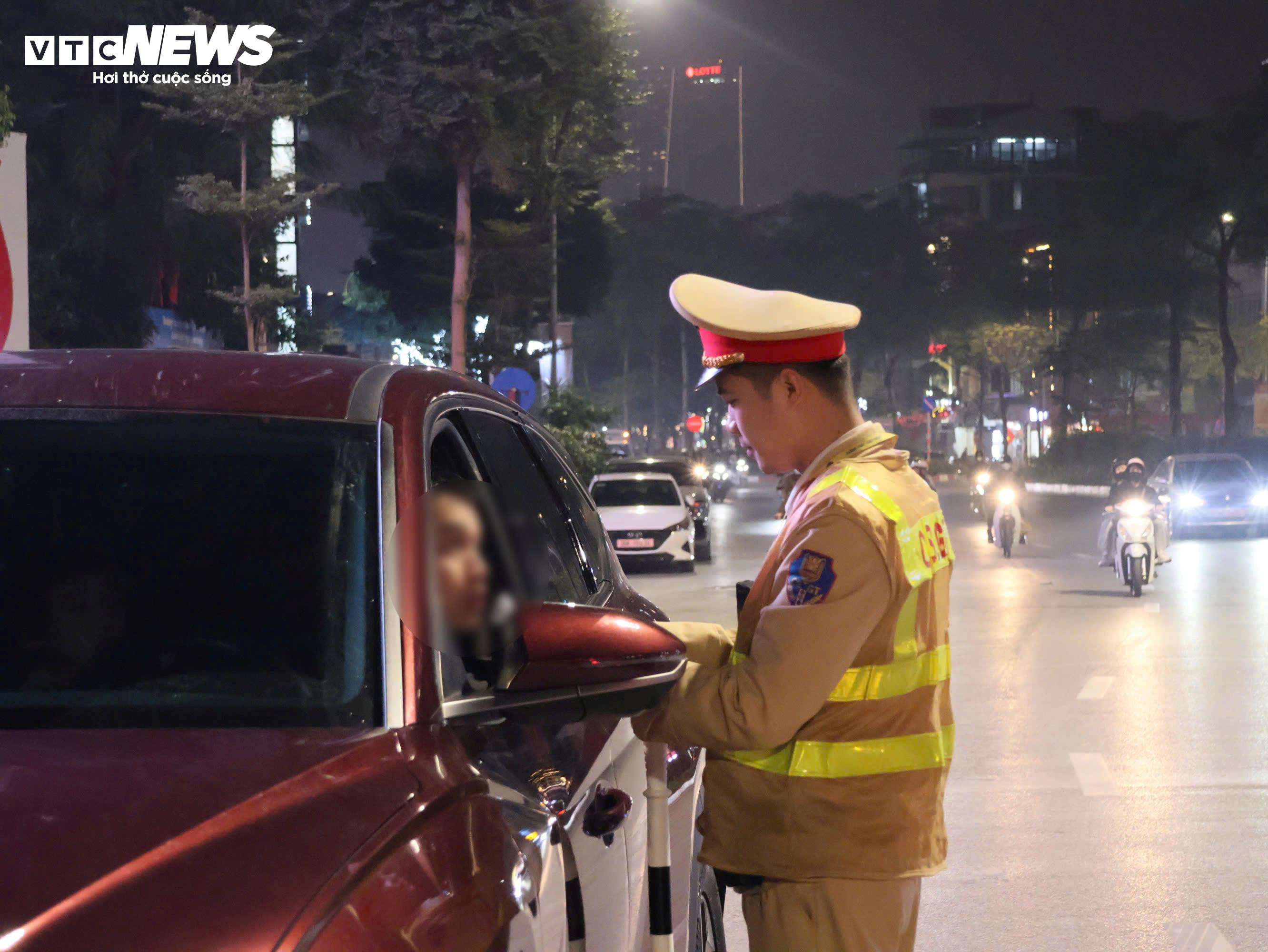 Đến 22h30 cùng ngày, tại nút giao Xã Đàn - La Thành, phường Văn Miếu - Quốc Tử Giám, tổ công tác Đội CSGT đường bộ số 3 tiếp tục duy trì hoạt động kiểm soát nồng độ cồn đối với người điều khiển phương tiện tham gia giao thông. Tổ công tác phát hiện và xử lý 7 trường hợp vi phạm, trong đó tài xế vi phạm nồng độ cồn vượt mức kịch khung.