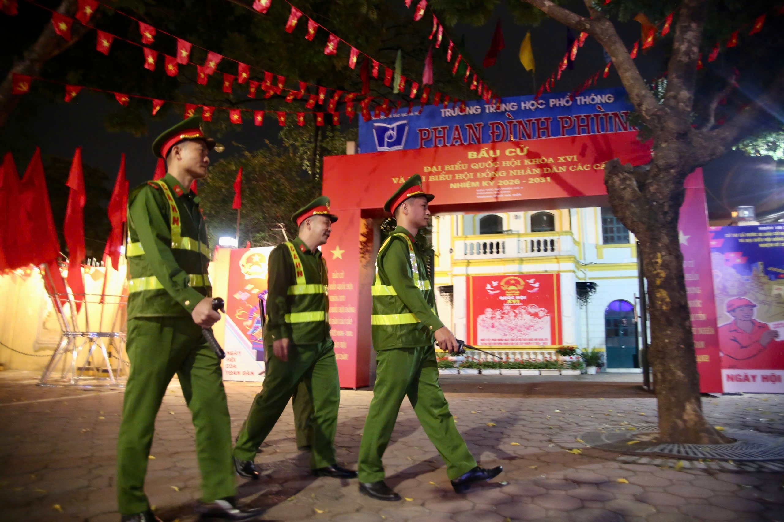 Công an phường Ba Đình tuần tra bảo đảm ANTT tại các điểm bỏ phiếu