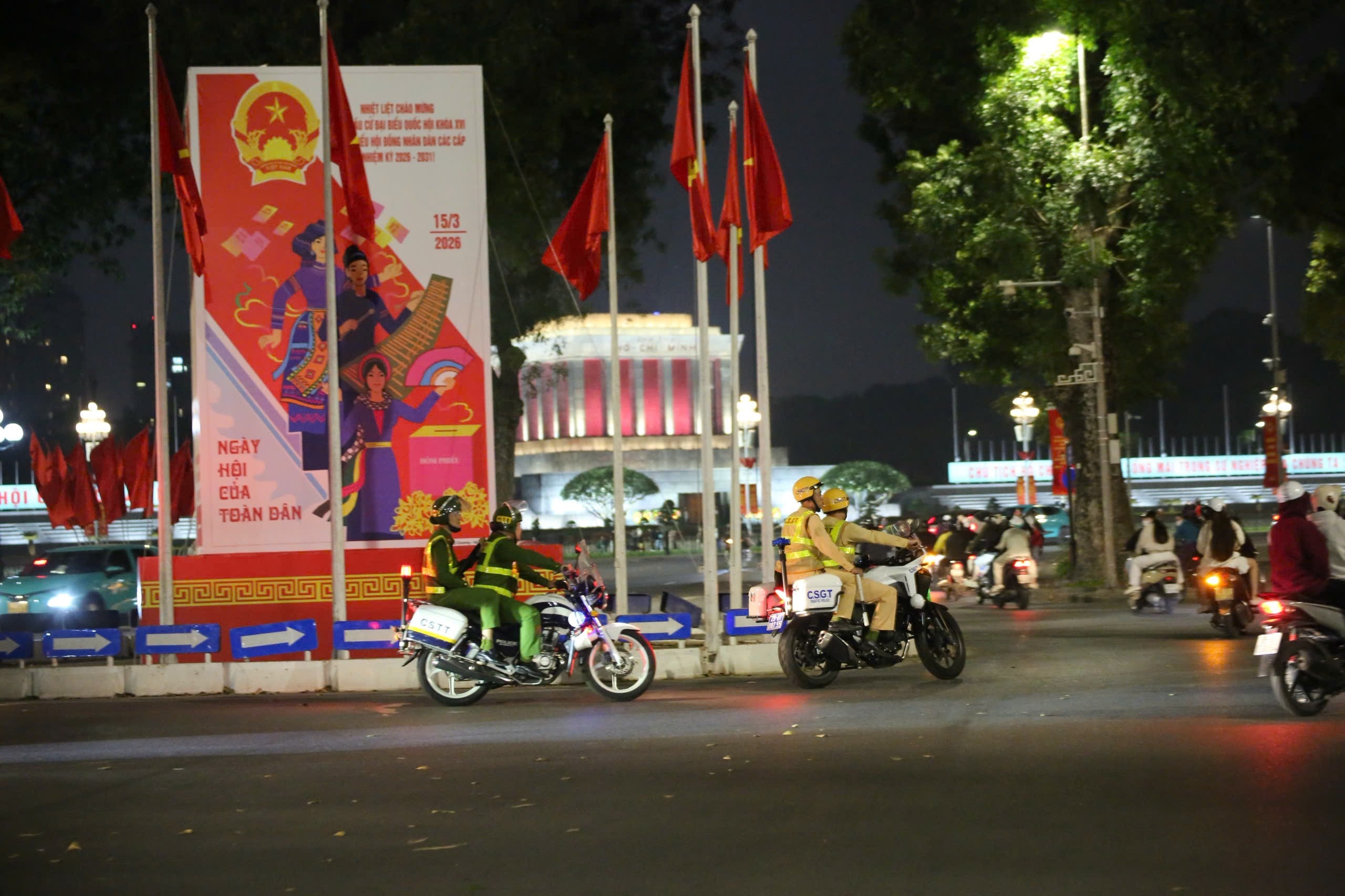 Thực hiện kế hoạch của Công an TP Hà Nội về bảo đảm an ninh, trật tự phục vụ cuộc bầu cử đại biểu Quốc hội khóa XVI và đại biểu Hội đồng nhân dân các cấp nhiệm kỳ 2026 - 2031, tối 14/3/2026, Đội CSGT đường bộ số 2 đã phối hợp với Công an phường Ba Đình triển khai kế hoạch tuần tra, kiểm soát ban đêm trên địa bàn, chủ động phòng ngừa, phát hiện và xử lý kịp thời các hành vi vi phạm pháp luật.