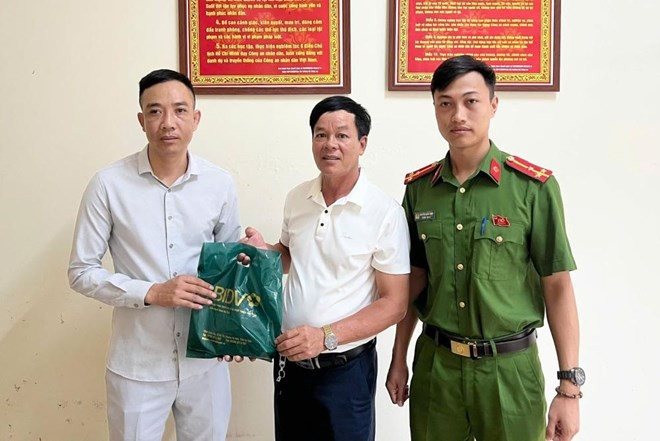 Nhận lại tài sản, Vũ Viết Thụ đã gửi lời cảm ơn sâu sắc đến gia đình ông Phan Văn Lịch cùng toàn thể cán bộ, chiến sĩ Công an xã Cẩm Duệ.