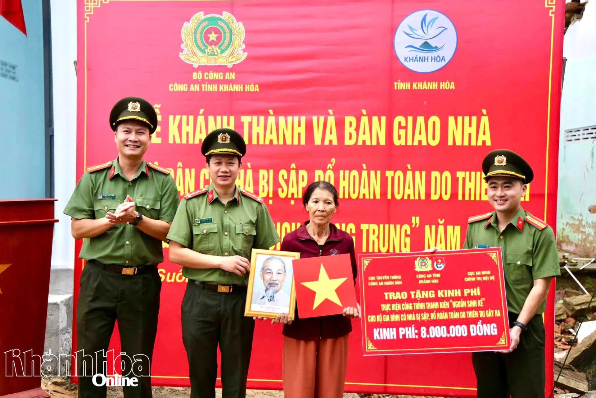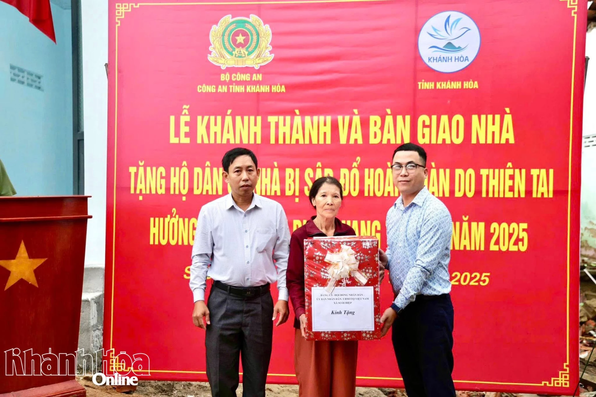 Sáng 26-12, tại thôn Thủy Xương, xã Suối Hiệp, Công an tỉnh Khánh Hòa phối hợp với Đảng ủy, UBND xã tổ chức lễ bàn giao nhà mới cho gia đình bà Võ Thị Thu - hộ có nhà ở bị sập hoàn toàn do thiên tai. Đây là căn nhà thứ 11 trong “Chiến dịch Quang Trung” được Công an tỉnh khẩn trương thi công hoàn thiện.