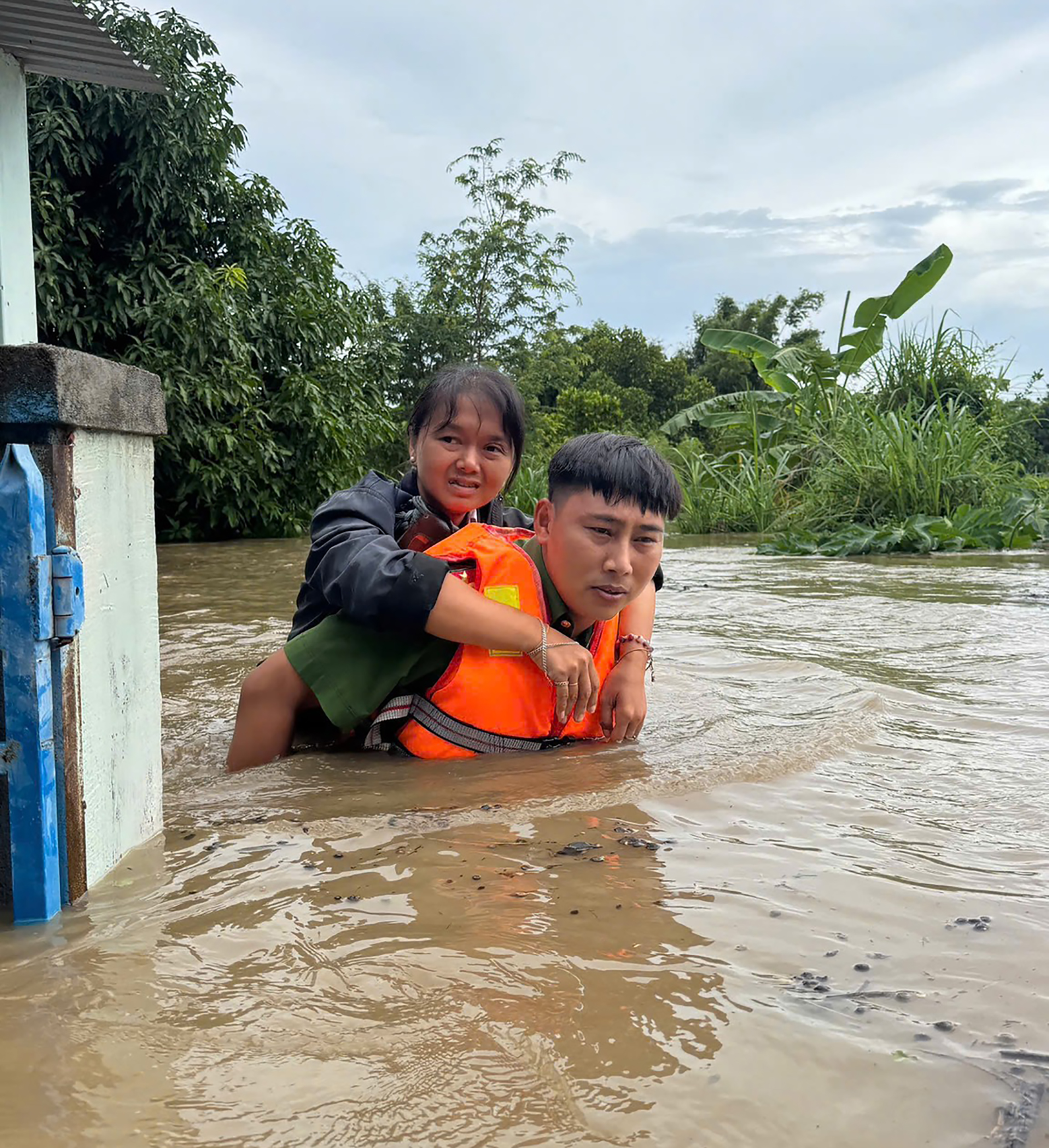 Giữa vùng lũ lụt ở phường Nam Nha Trang, Công an tỉnh Khánh Hòa vẫn "xung trận" cứu nạn, cứu hộ, giúp dân sơ tán ra khỏi nơi nguy hiểm.