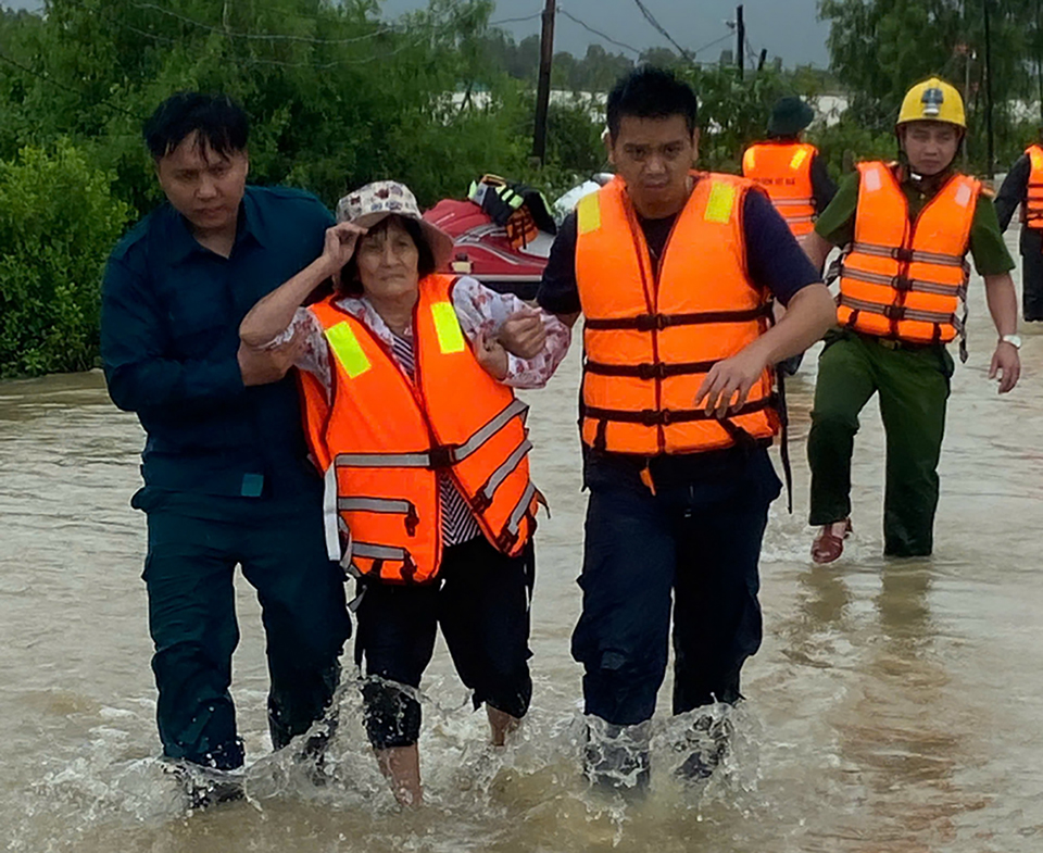 Người dân ở phường Bắc Nha Trang được đưa ra khỏi vùng lũ lụt.