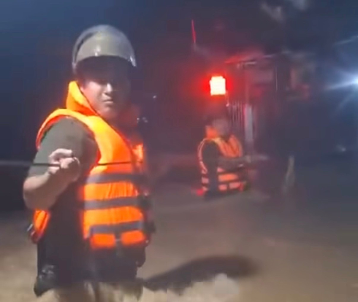 Công an tỉnh Khánh Hòa vượt lũ, di dời người dân trong đêm.