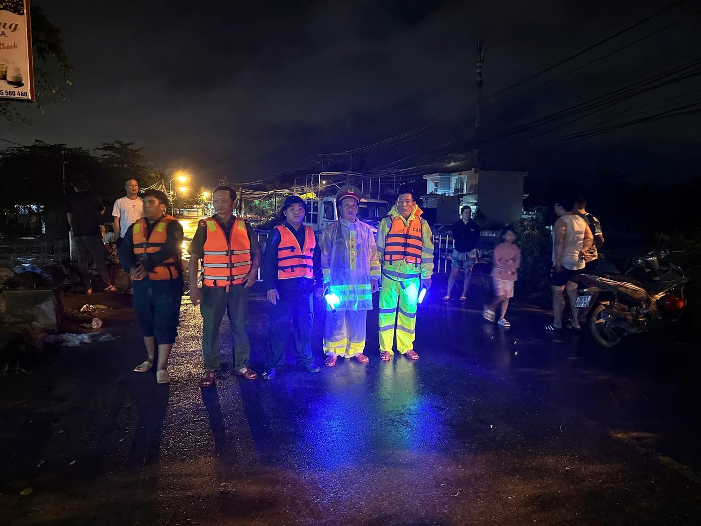 Cán bộ chiến sĩ Công an phường Bắc Nha Trang được huy động trong đêm để hỗ trợ một số hộ dân di dời. Ảnh: ANTV Khánh Hòa.