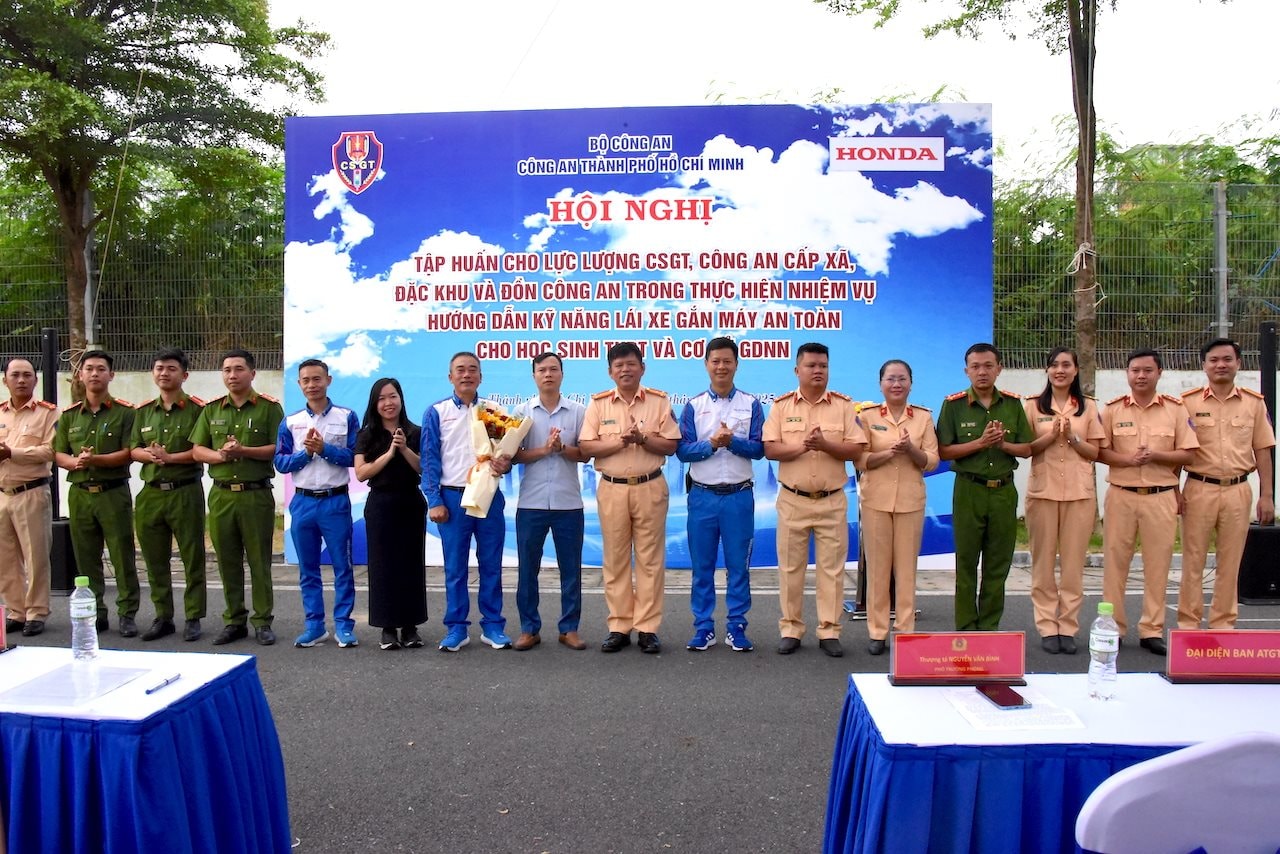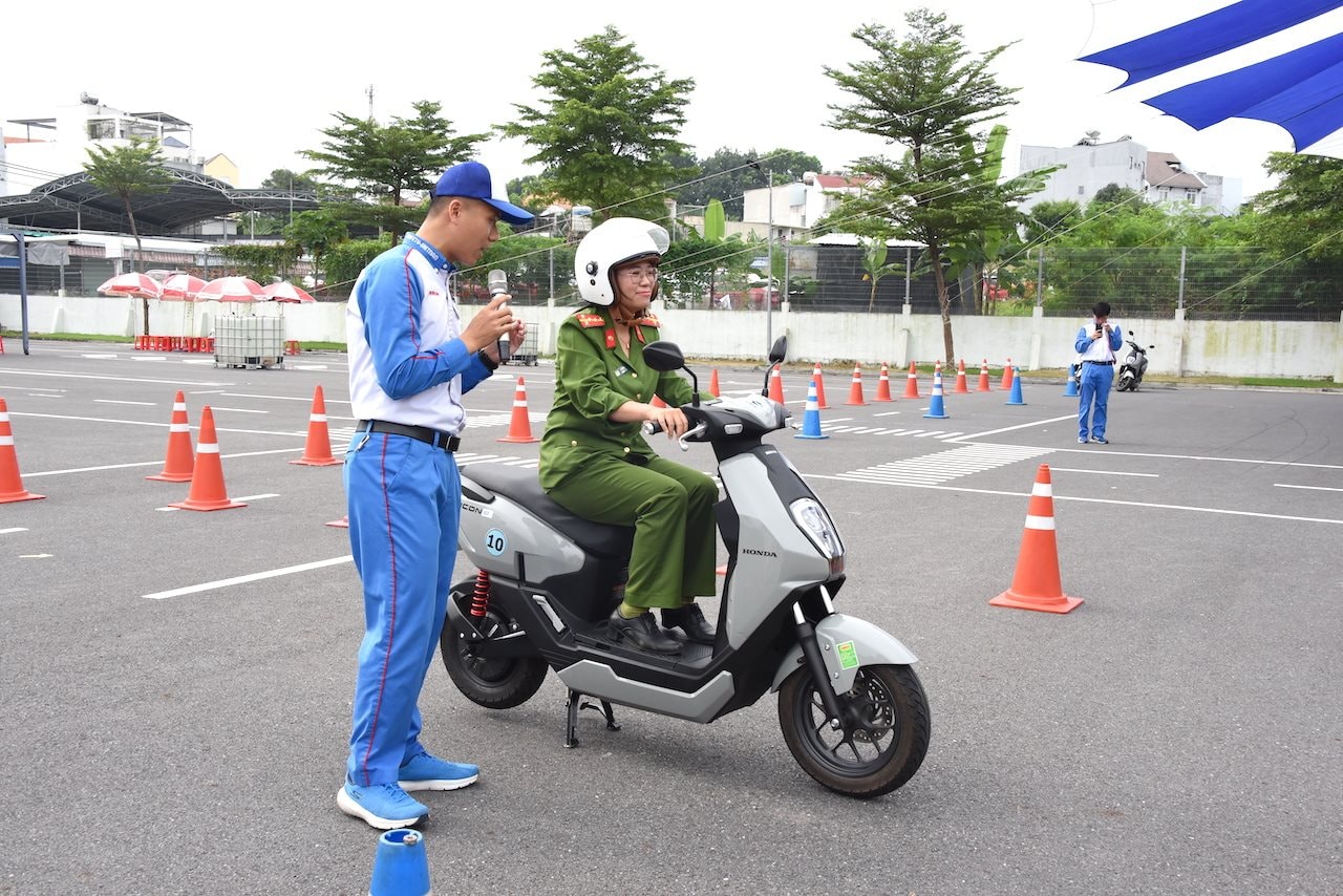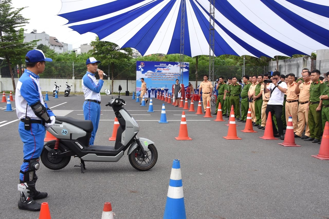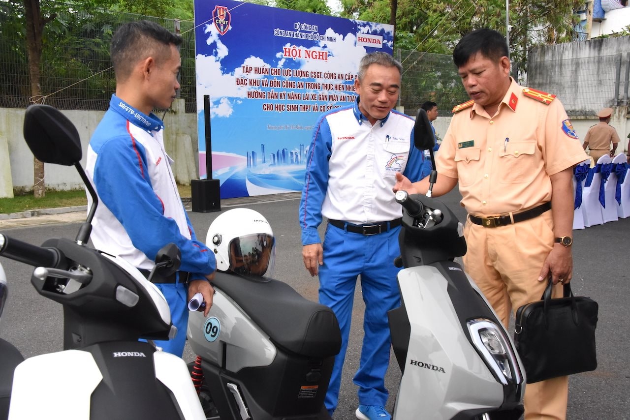 Sau Hội nghị, đại diện Công ty Honda Việt Nam đã hướng dẫn nhiều kỹ năng lái xe an toàn cho cán bộ, chiến sĩ Công an cấp xã, đặc khu và đồn Công an trên địa bàn.