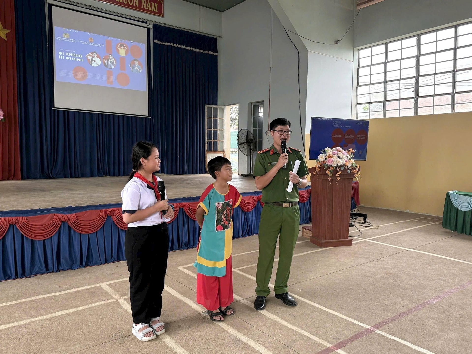 Thông qua hình thức trực tiếp đóng vai vào tiểu phẩm “Cú lừa ảo - Giải cứu thật”, hỏi - đáp, trao đổi tình huống thực tế và video minh họa, học sinh được hướng dẫn nhận biết các thủ đoạn lừa đảo, thao túng, giả mạo cán bộ Công an, Điện lực, người thân… để lừa đảo trên không gian mạng.