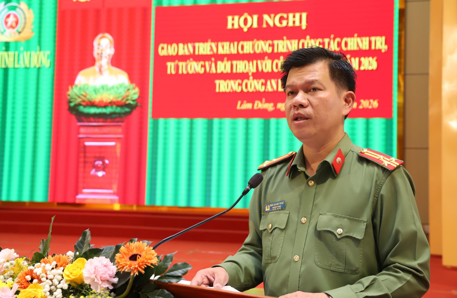 Tại Hội nghị, các đại biểu đã được nghe báo cáo tóm tắt kết quả công tác chính trị, tư tưởng năm 2025 trong lực lượng Công an tỉnh Lâm Đồng. Theo đó, trong năm 2025, Công an tỉnh đã triển khai đồng bộ, hiệu quả các mặt công tác chính trị, tư tưởng, góp phần giữ vững ổn định nội bộ, tạo sự thống nhất cao về nhận thức và hành động trong toàn lực lượng, nhất là trong bối cảnh tiếp tục triển khai mô hình tổ chức công an 3 cấp.