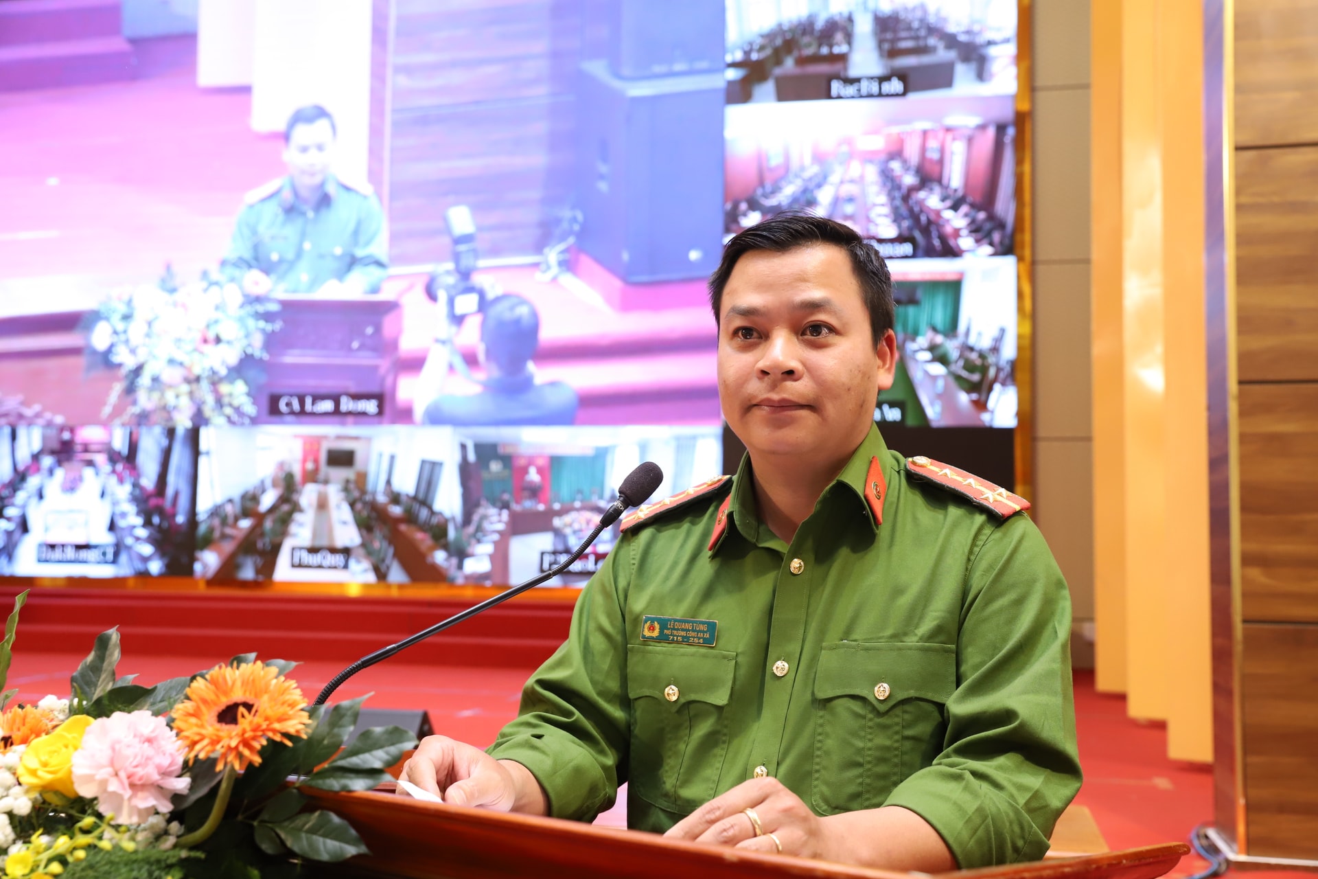 Đại tá Trần Văn Mười, Phó Giám đốc Công an tỉnh Lâm Đồng phát biểu tại Hội nghị
