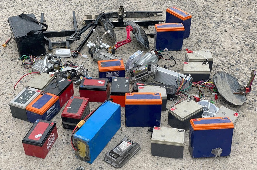 Số pin, linh kiện độ chế được Công an xã Đạ Huoai tháo ra từ xe đạp điện của các học sinh