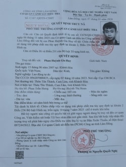 Trước đó, ngày 7/1/2026, Cơ quan Cảnh sát điều tra cũng đã ban hành quyết định truy nã đối với Phan Huỳnh Gia Huy (SN 2007, quê quán Khánh Hòa, thường trú tại huyện Cam Lâm, tỉnh Khánh Hòa). Đối tượng Phan Huỳnh Gia Huy bị khởi tố về tội “Chứa chấp việc sử dụng trái phép chất ma túy” theo khoản 2, Điều 256 Bộ Luật Hình sự.