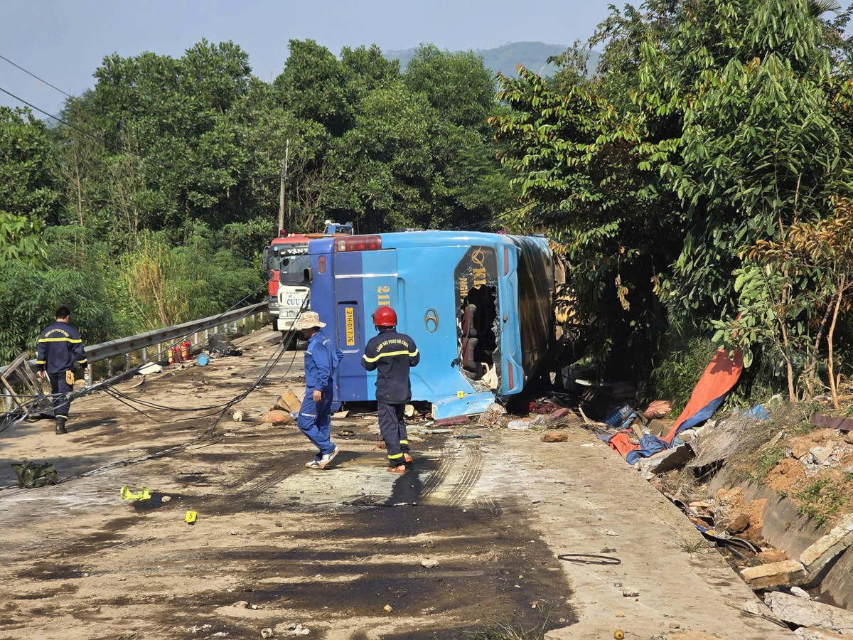 Trên xe chở Lò Văn Hòa (SN 1995, trú tại tổ dân phố Hạnh Sơn, phường Cầu Thia, tỉnh Lào Cai) là phụ xe và 30 hành khách.