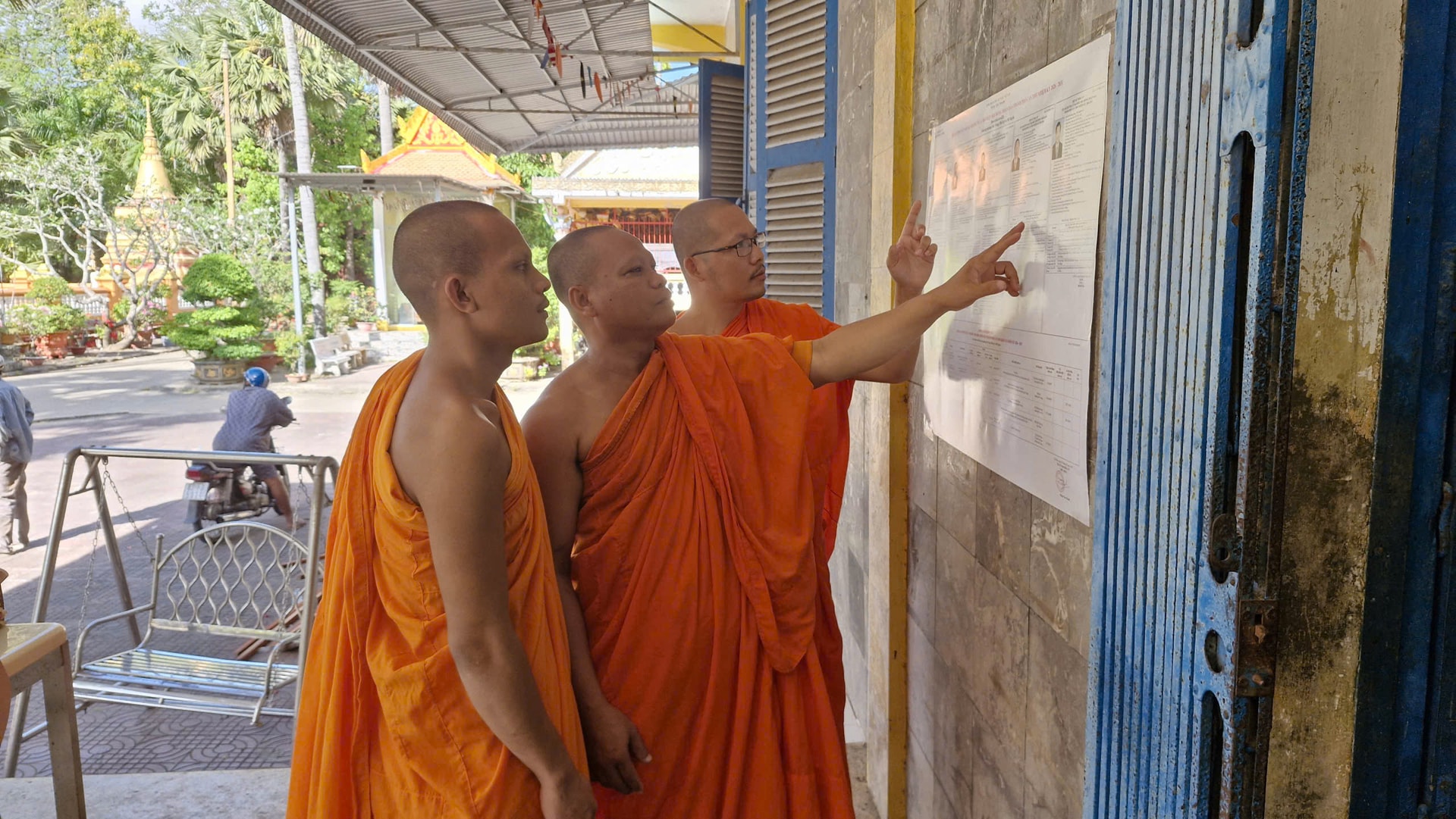 Cử tri đồng bào dân tộc Khmer xem tiểu sử các ứng cử viên - Ảnh: Lươg Xuân Cao