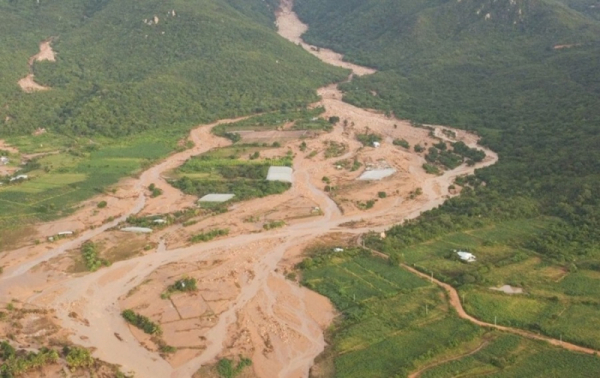 Hiện trường vụ vỡ hồ nước trên núi ở xã Tuy Phong, tỉnh Lâm Đồng.