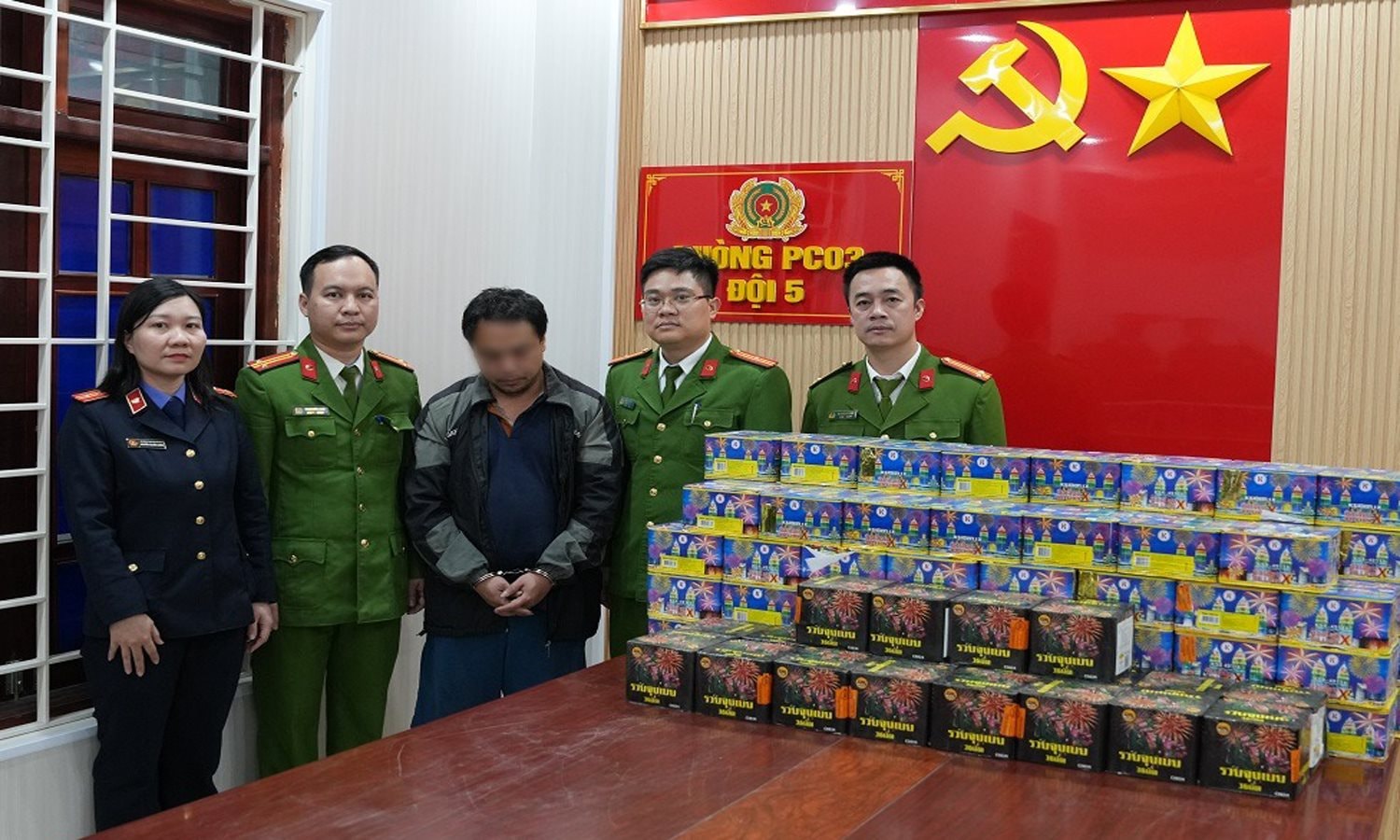 Trước đó một ngày, 23/12/2025, tại xã Trung Lộc, Phòng Cảnh sát kinh tế phối hợp Trạm CSGT Diễn Châu và Công an các xã liên quan bắt quả tang Phạm Công Hùng (SN 1982, trú xã Đô Lương) và Hồ Sỹ Long (SN 1987, trú xã Tam Đồng) về hành vi buôn bán hàng cấm, thu giữ 110kg pháo nổ.