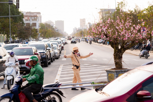 Lực lượng CSGT hướng dẫn, phân luồng giao thông trong dịp Tết.