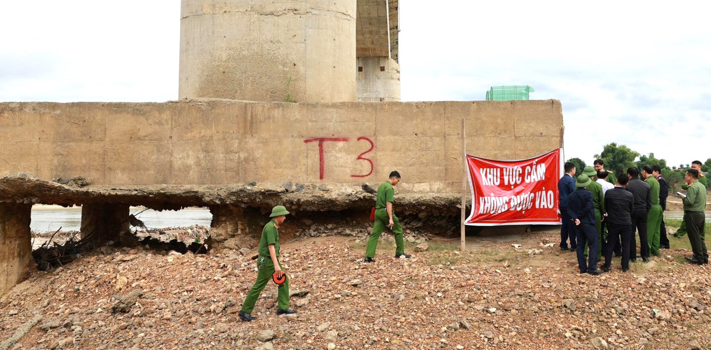 Cơ quan Cảnh sát điều tra kiểm tra hiện trường và triển khai các biện pháp nghiệp vụ theo thẩm quyền trước thông tin móng cọc trụ cầu sông Lô.