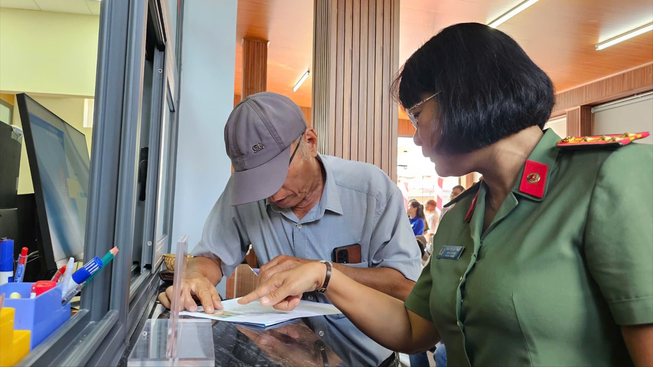 Người dân tới làm thủ tục hành chính tại Bộ phận tiếp nhận và trả kết quả Công an xã Hồ Tràm