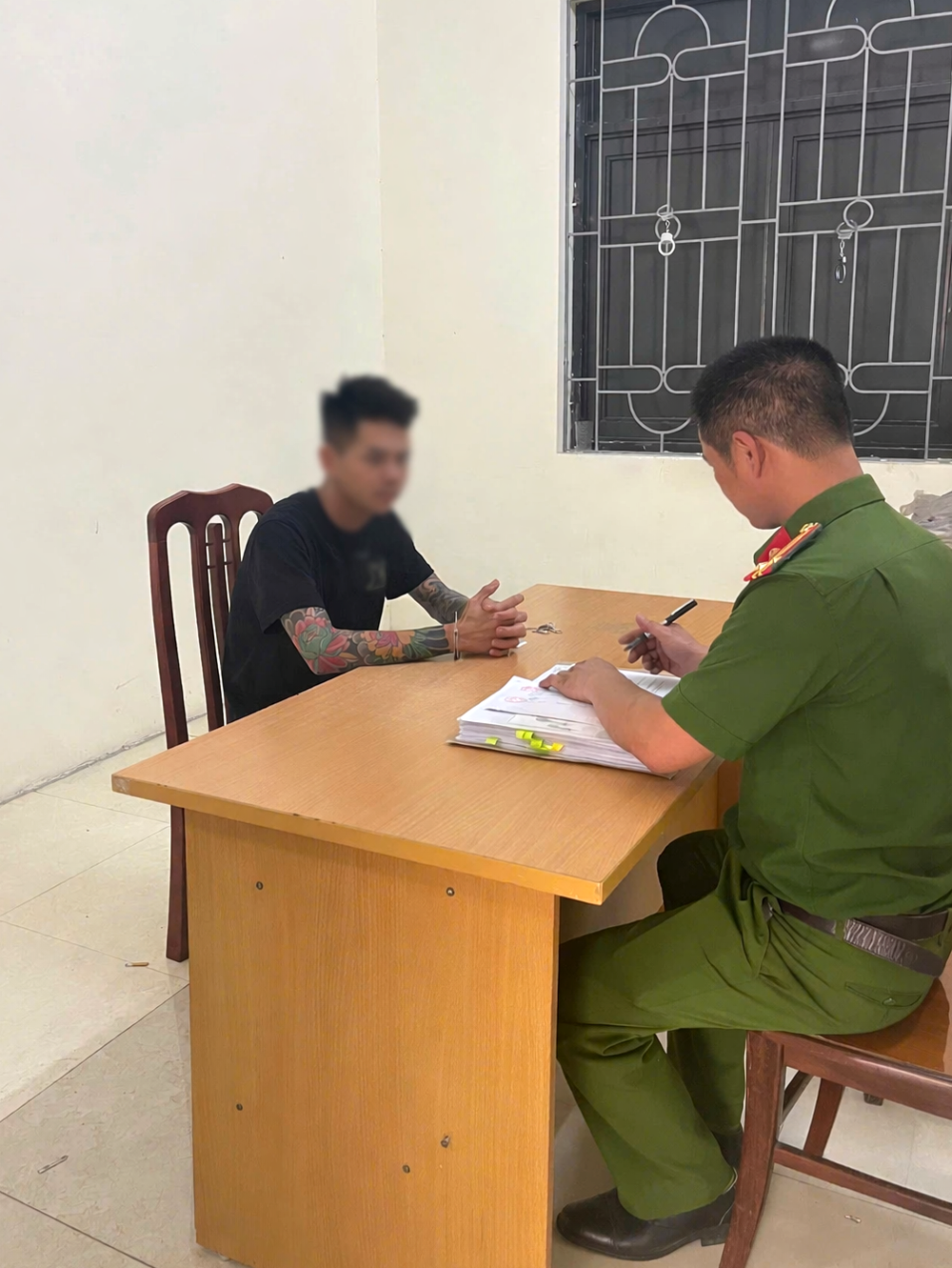 Một đối tượng bị bắt giữ ngày 7/4 trong ổ nhóm mua bán ma túy tại cơ sở lưu trú đang được cán bộ công an lấy lời khai.