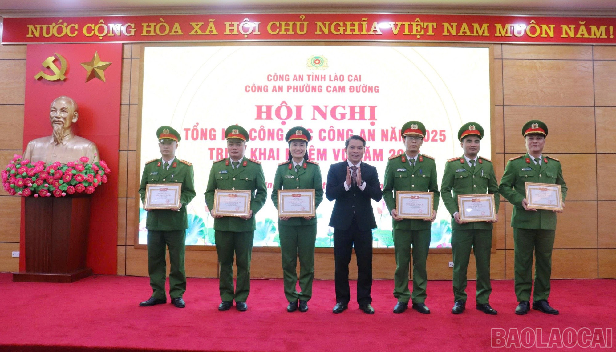 Tổng kết phong trào thi đua năm 2025, Công an phường Cam Đường vinh dự nhận danh hiệu “Đơn vị quyết thắng”.