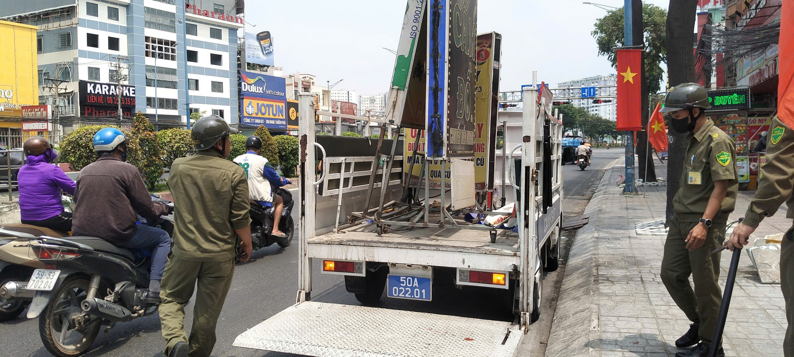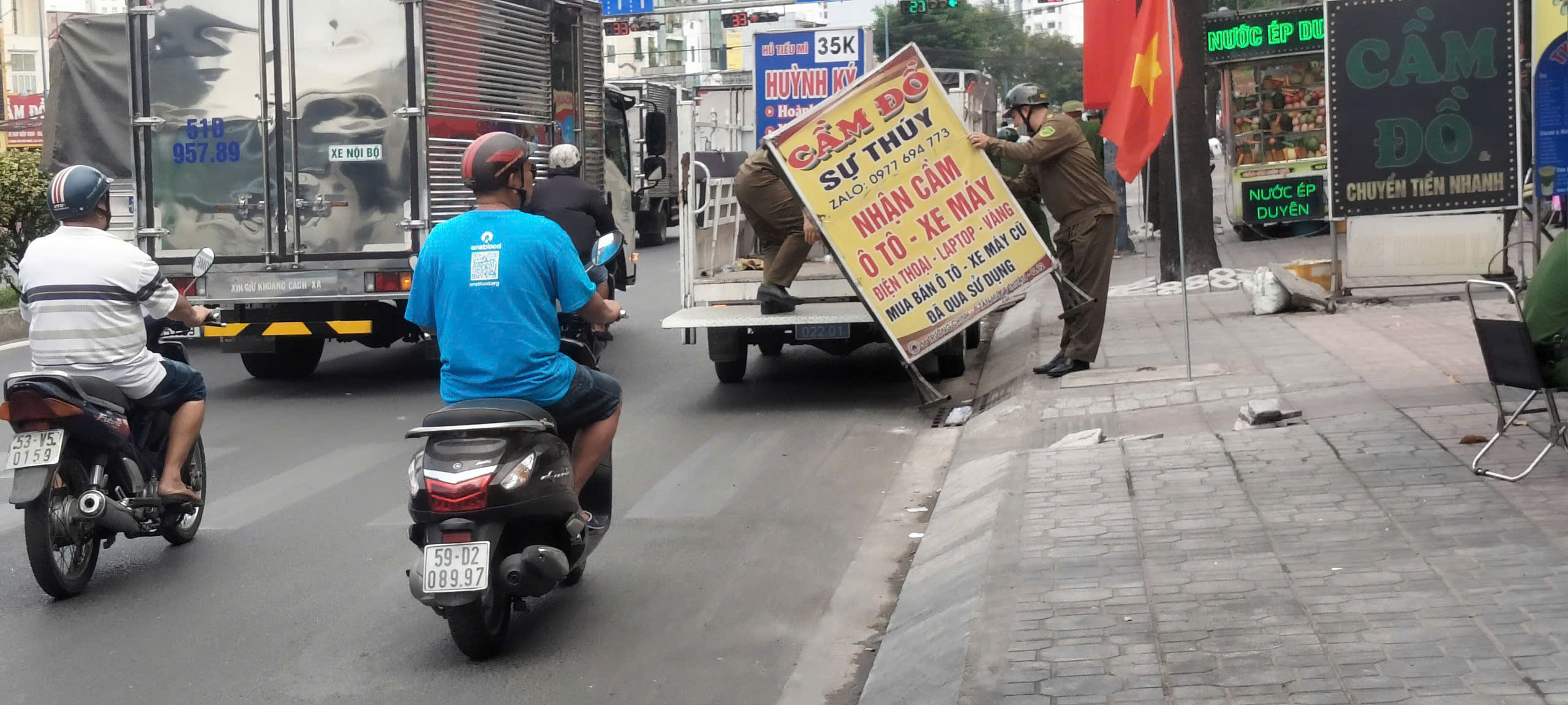 Việc xử lý nghiêm hành vi lấn chiếm vỉa hè góp phần bảo đảm mỹ quan đô thị dịp lễ 30-4. Ảnh: N.TÂN