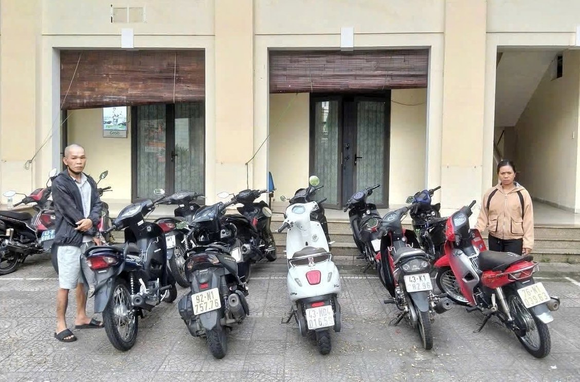 Theo đó, qua đấu tranh, 2 đối tượng Nguyễn Văn Tuấn (SN 1988, phường Thanh Khê) và Nguyễn Thị Bích Trâm (SN 1990, phường Hải Châu) khai nhận đã thực hiện 9 vụ trộm cắp xe máy trên địa bàn phường Hòa Khánh và một số khu vực khác tại thành phố Đà Nẵng.