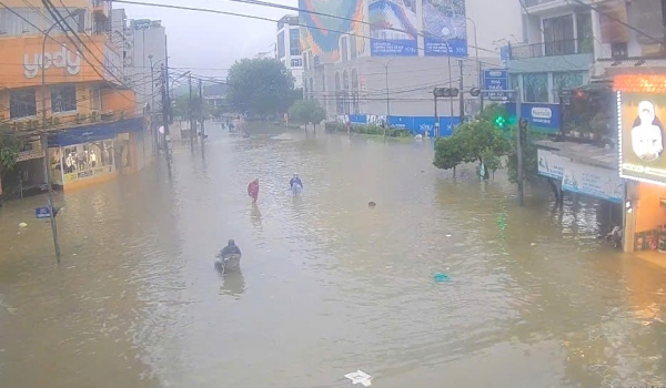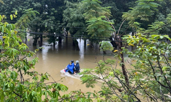 Mưa lớn, nước sông Hương dâng cao khiến nhiều tuyến đường ở trung tâm TP Huế ngập lụt.