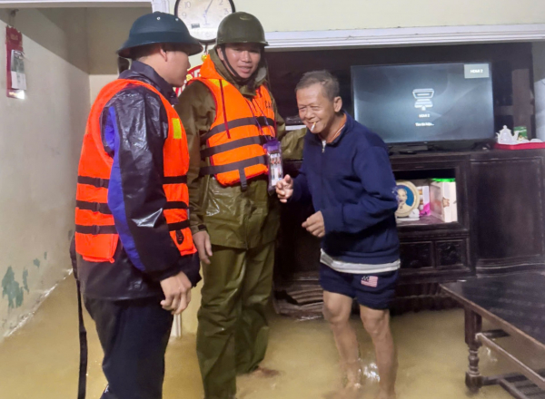 Tại phường An Cựu, TP Huế, trong tối qua, Công an phường An Cựu cùng với lực lượng Tổ ANTT ở cơ sở, chính quyền địa phương và các lực lượng tại chỗ đã đến từng nhà dân ở đường Nguyễn Hữu Cảnh – khu vực ngập lụt sâu nhất ở địa phương này để hỗ trợ người dân di dời đến nơi an toàn.