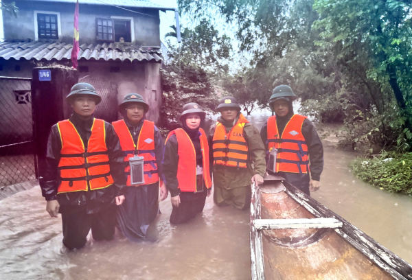 Công an các phường, xã ở Huế chủ động hỗ trợ, di dời người dân vùng ngập lụt sâu.