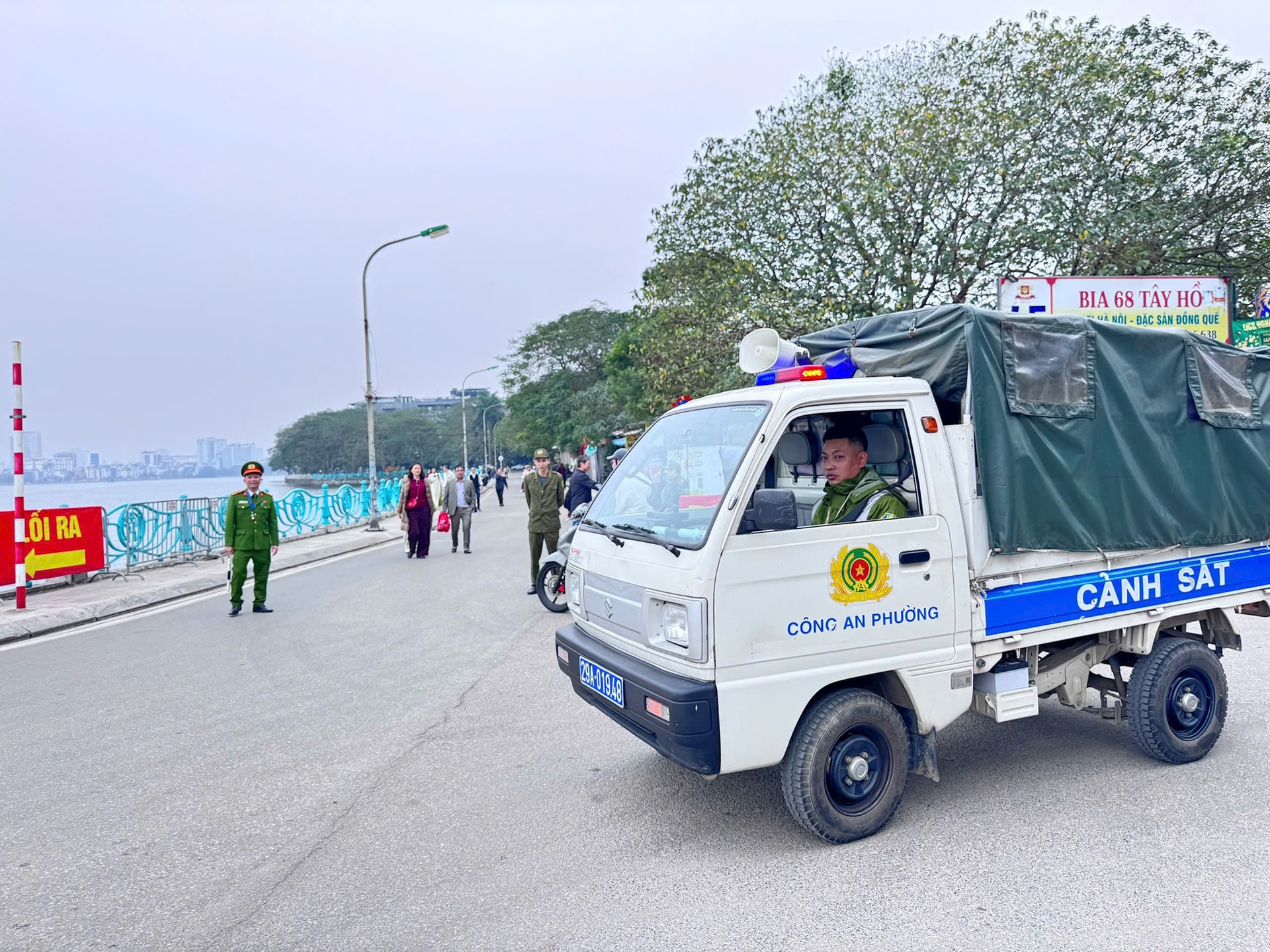 Thông tin với phóng viên, Trung tá Ngô Thái Sơn - Trưởng Công an phường Tây Hồ cho biết, đơn vị huy động tối đa cán bộ, chiến sĩ tổ chức phân luồng từ xa, hướng dẫn lộ trình hợp lý và thực hiện tuần tra kiểm soát liên tục. Các tổ công tác ứng trực 24/24 giờ tại khu vực đông người để kịp thời phòng ngừa, phát hiện các hành vi vi phạm pháp luật như trộm cắp, móc túi hay các hình thức mê tín dị đoan.