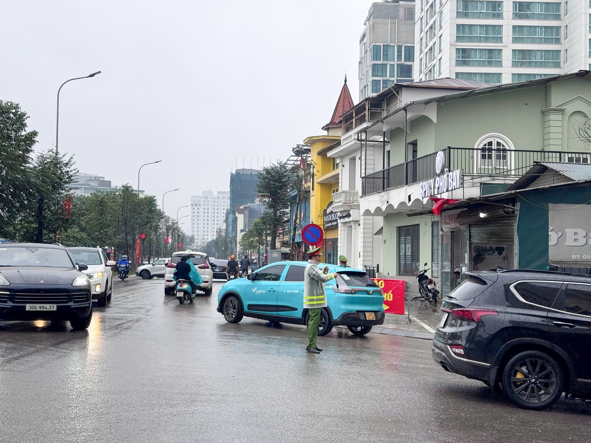Cán bộ, chiến sĩ Công an phường Tây Hồ ứng trực 24/24 giờ, phân luồng giao thông linh hoạt tại các nút giao trọng điểm, không để xảy ra tình trạng ùn tắc cục bộ khi lưu lượng du khách tăng cao.