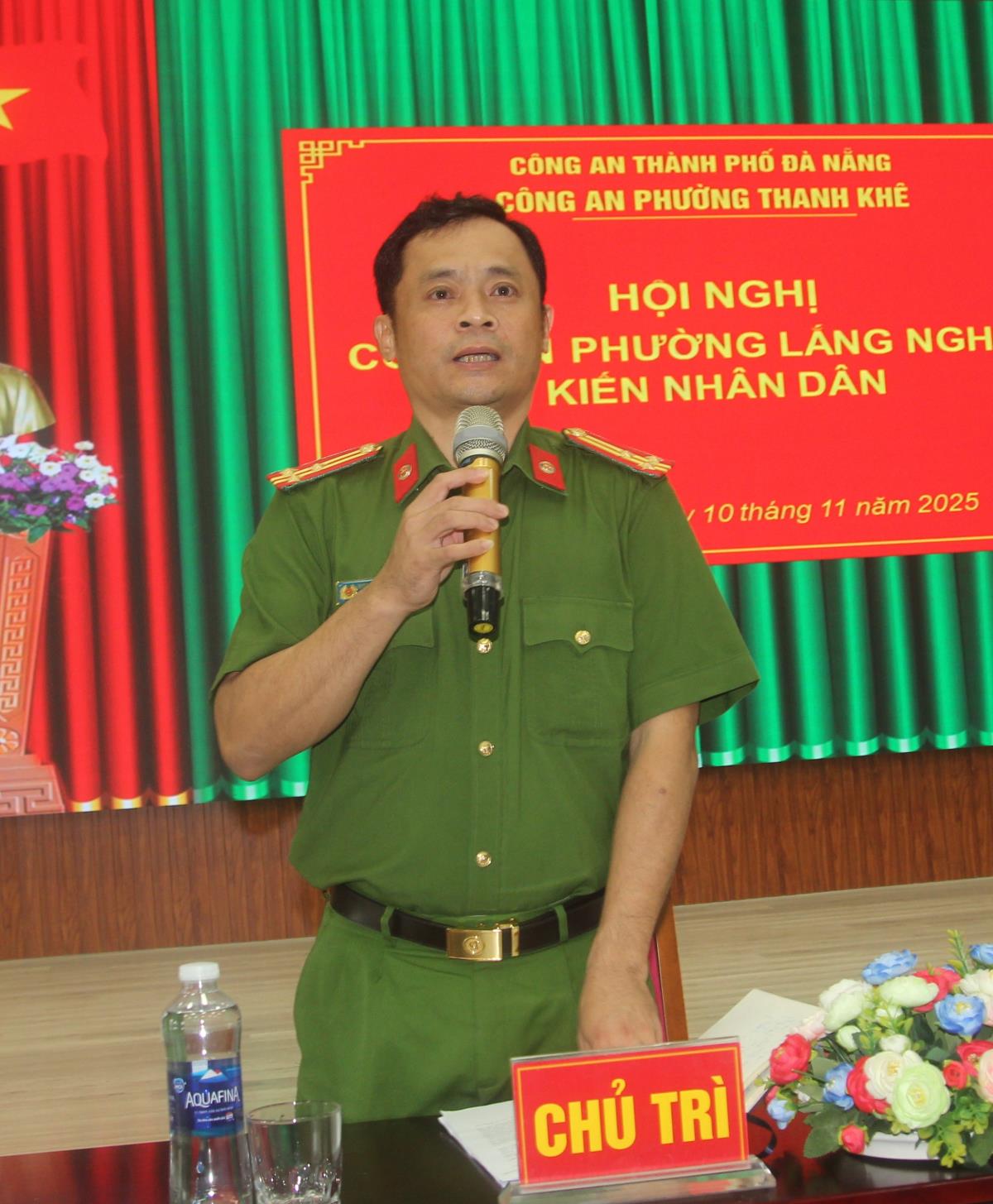 Lãnh đạo Công an phường Thanh Khê nghiêm túc tiếp thu ý kiến đóng góp của các Bí thư Chi bộ khu dân cư và cảm ơn sự quan tâm, đồng hành của cấp ủy, chính quyền cùng nhân dân.