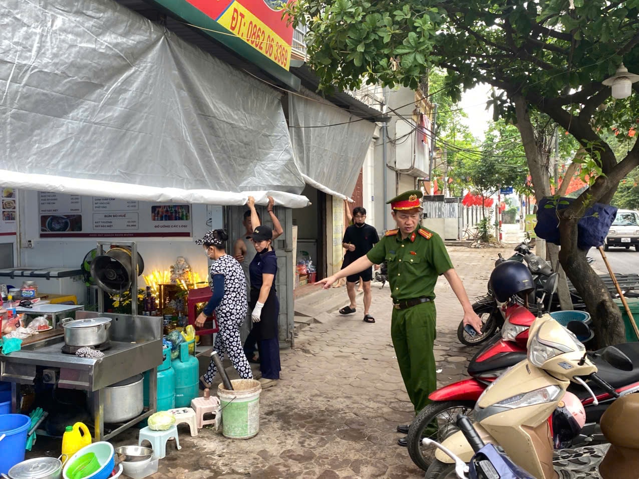 Công an phường Thượng Cát ra quân xử lý các vi phạm lấn chiếm vỉa hè