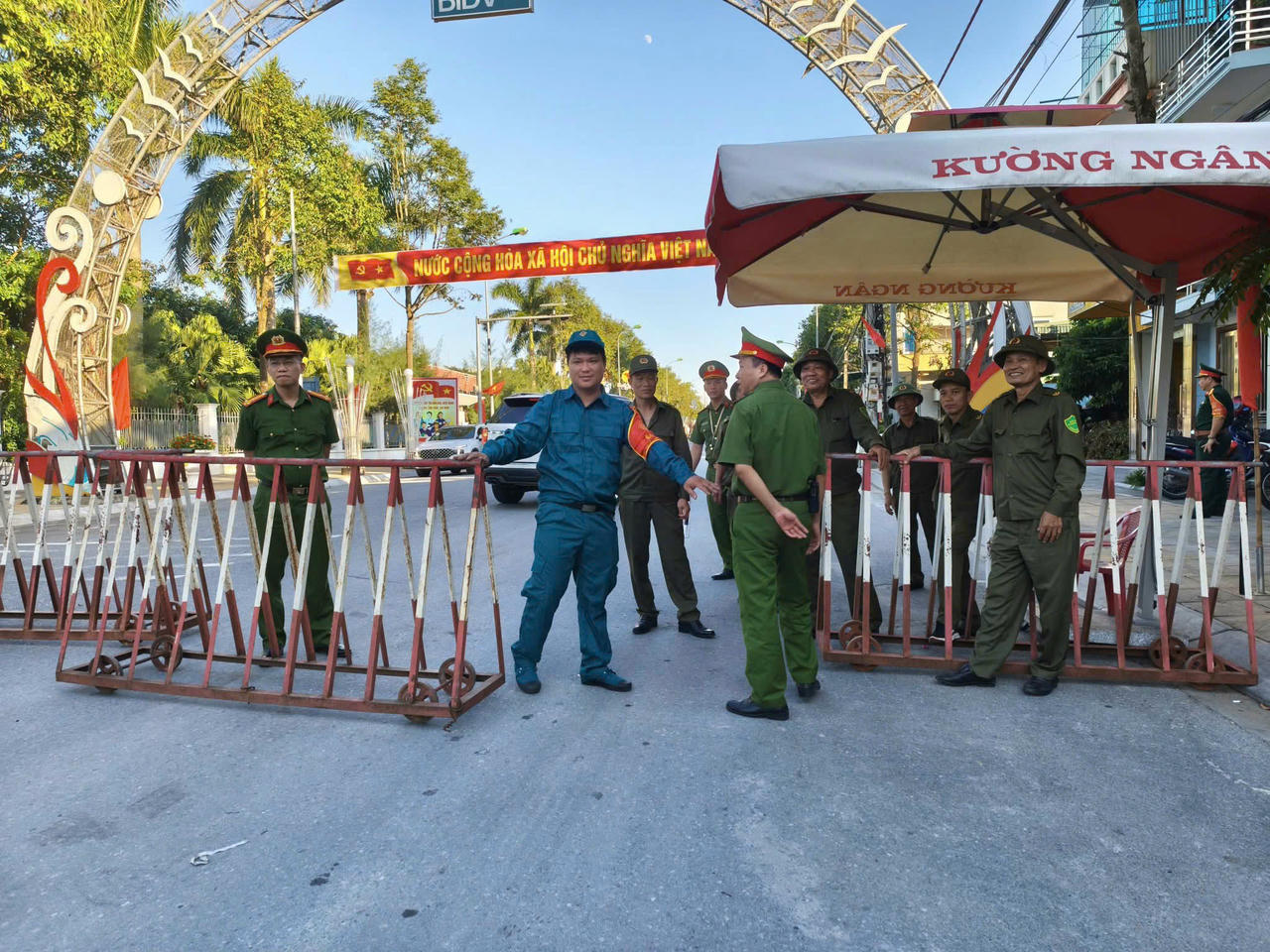 Công an Phường Trà Lý (tỉnh Hưng Yên) thành lập 09 tổ công tác bảo vệ vòng ngoài, phối hợp với lực lượng Cảnh sát giao thông thực hiện nhiệm vụ chốt chặn, hướng dẫn, phân luồng giao thông.