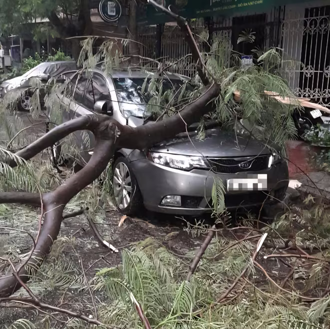 Cây đổ đè xe ô tô ở ngõ 20 Trương Định