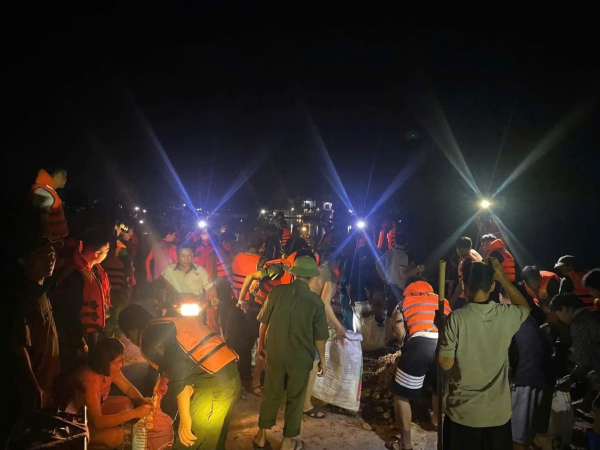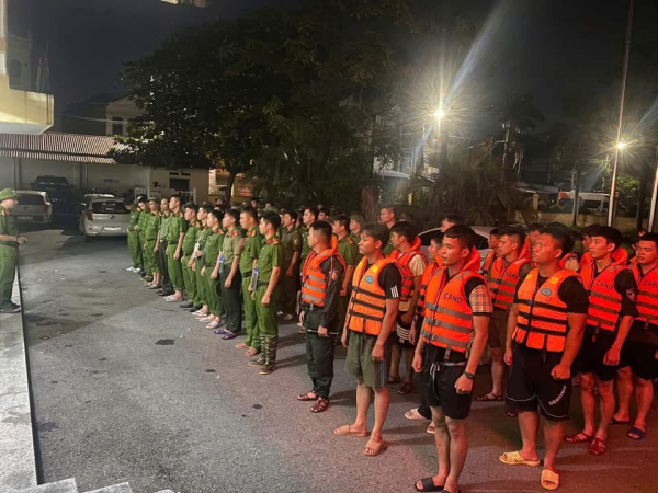 Trong đêm 8/10, lực lượng Công an đã huy động CBCS, phương tiện, vật tư phối hợp lực lượng quân đội, chính quyền địa phương và nhân dân khẩn trương gia cố, chống tràn các tuyến đê Hà Châu, đê Chã tại những vị trí xung yếu, đồng thời tuần tra, canh gác các tuyến đê, kịp thời phát hiện, xử lý sự cố tình huống có thể xảy ra, vận động sơ tán người dân tài sản ra khỏi khu vực nguy hiểm...