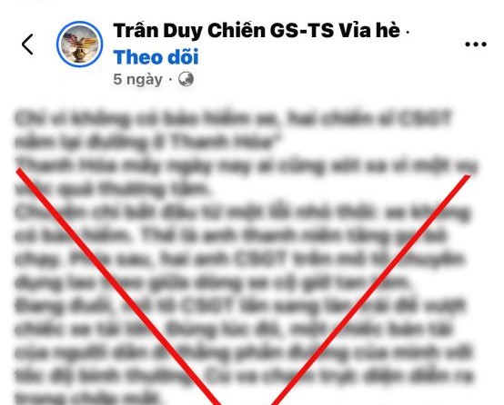 Mới đây, trên mạng xã hội Facebook xuất hiện bài viết đăng tải thông tin cho rằng “hai chiến sĩ CSGT nằm lại đường ở Thanh Hóa do truy đuổi phương tiện vi phạm giao thông”. Nội dung này nhanh chóng được một số tài khoản chia sẻ lại, kèm theo nhiều bình luận suy diễn.