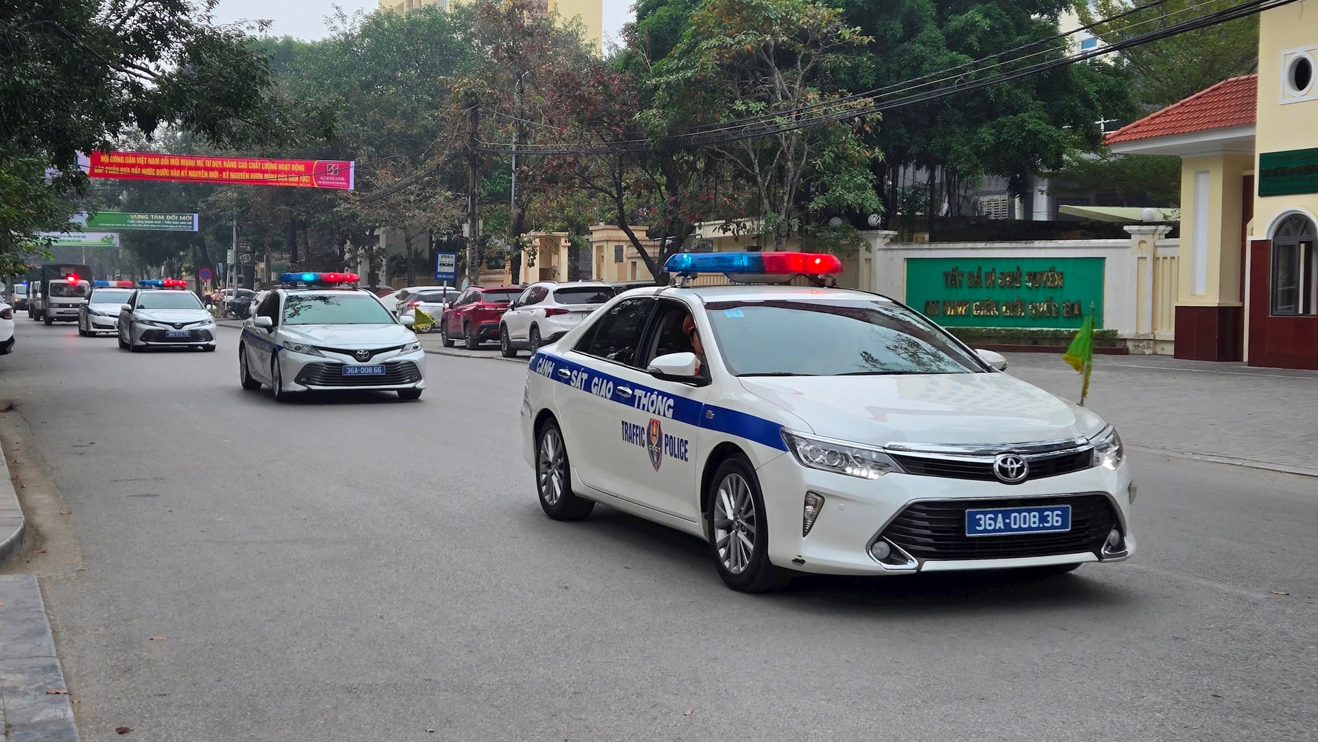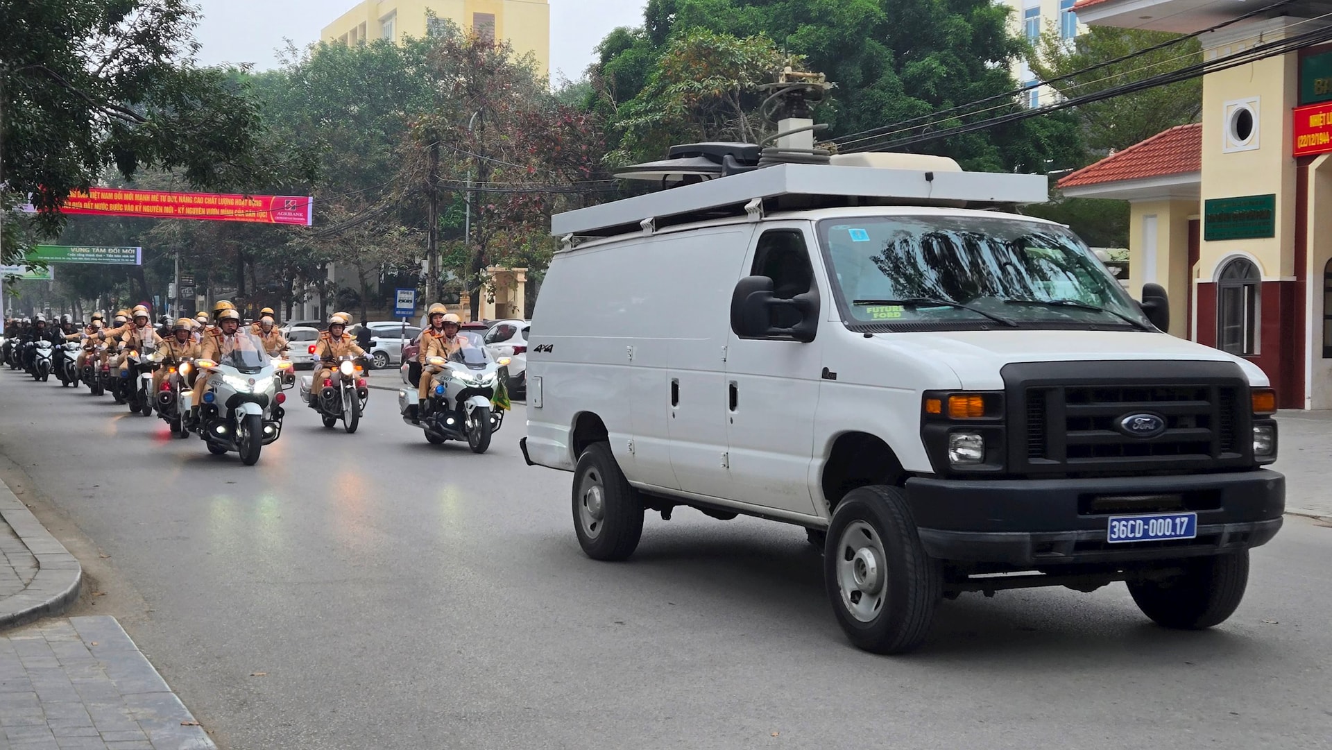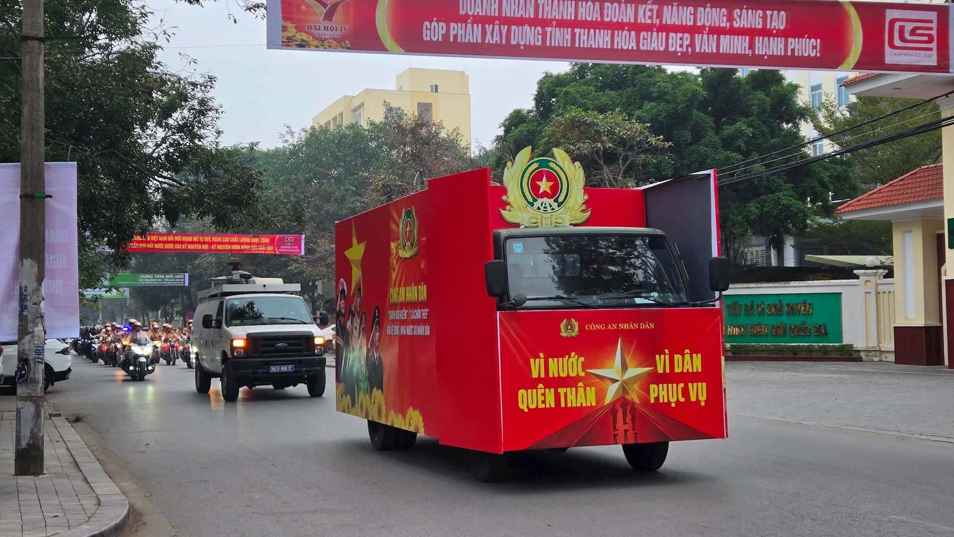 Các lực lượng Công an tỉnh Thanh Hóa tổ chức diễu hành biểu dương lực lượng trên các tuyến đường chính.