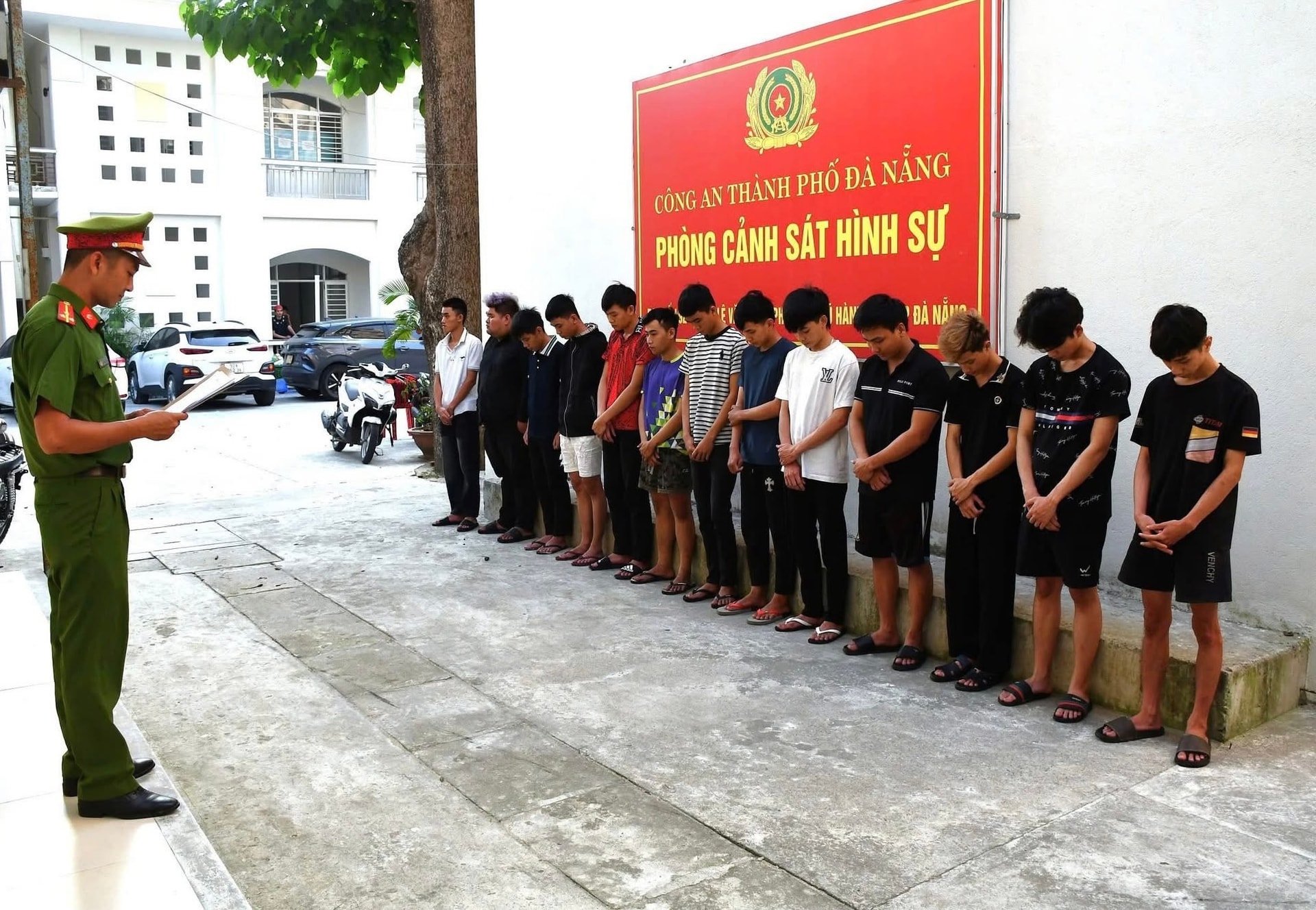 Cơ quan Cảnh sát điều tra Công an thành phố khởi tố vụ án, khởi tố bị can và bắt tạm giam 9 đối tượng về hành vi “Gây rối trật tự công cộng” gồm: Huỳnh Gia Luân (18 tuổi, trú phường An Khê), Trương Đăng Khôi (18 tuổi, trú phường Hòa Khánh), Huỳnh Thanh Huy (18 tuổi, trú xã Việt An), Trần Lê Anh Đức (18 tuổi, trú phường An Khê), Đinh Duy Thành (24 tuổi, trú phường Thanh Khê), Ngô Xuân Hưng (21 tuổi, trú phường Hòa Khánh), Lê Văn Bút (21 tuổi, trú xã Phú Lộc, thành phố Huế), Hoàng Anh Kiệt (19 tuổi, trú xã Ea Súp, tỉnh Đắk Lắk) và Lâm Văn Đạt (20 tuổi, trú phường Hội An Tây).