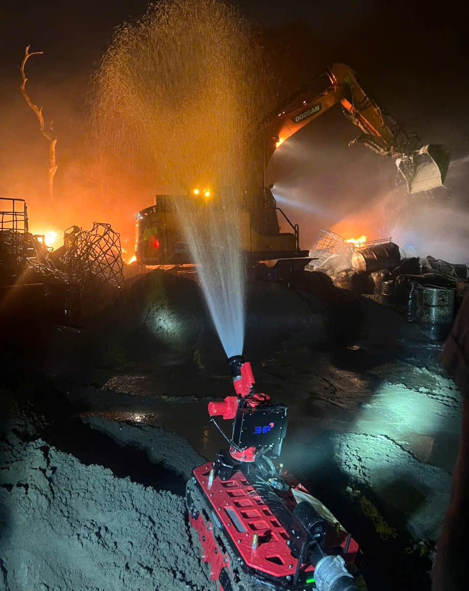 Robot chữa cháy được huy động tới hiện trường dập lửa. Ảnh: CA