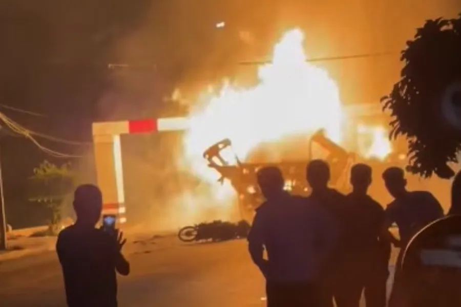 Hiện trường vụ nổ xe bồn rồi bốc cháy.