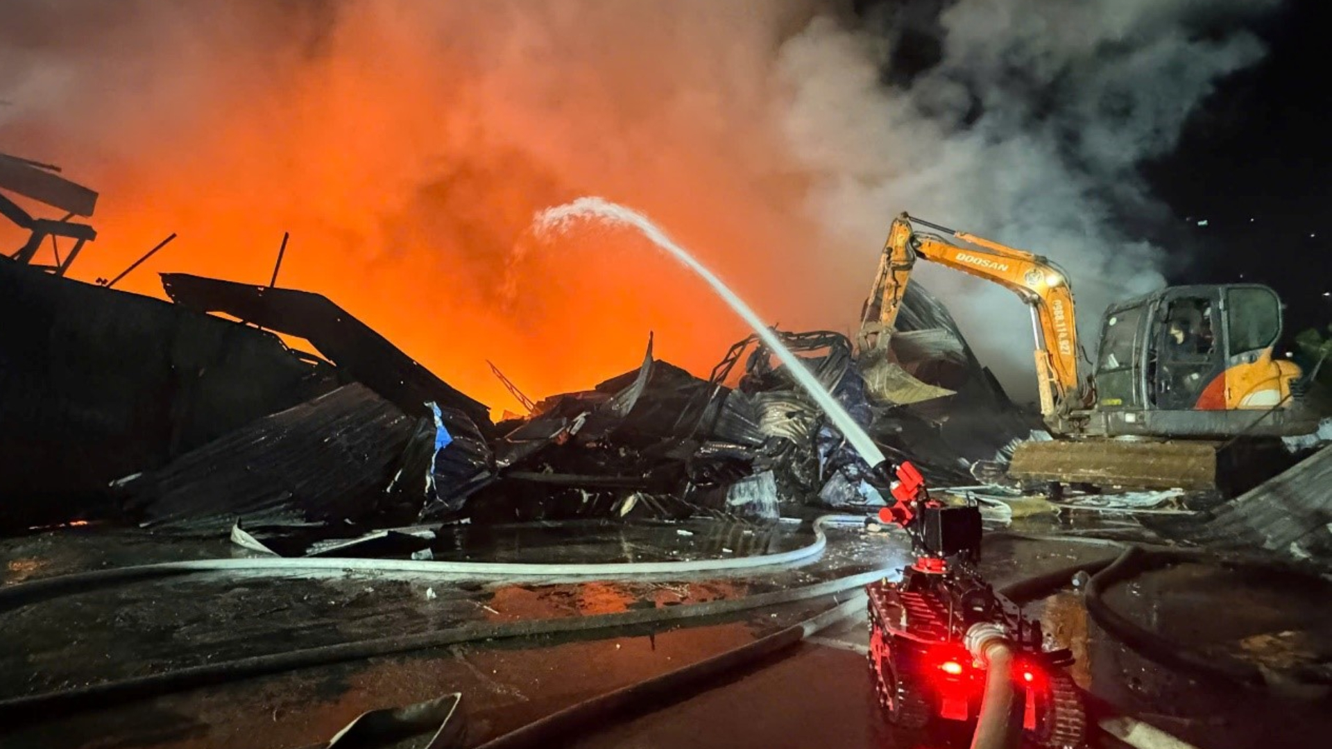 Ngay sau đó, lực lượng chức năng đã điều động 12 xe chữa cháy, 3 xe tải chở phương tiện, 4 xe chỉ huy, 2 robot chữa cháy cùng gần 100 cán bộ, chiến sĩ thuộc 8 đội Cảnh sát PCCC&CNCH nhanh chóng tới hiện trường tổ chức chữa cháy, cứu nạn cứu hộ. Đồng thời, 2 xe téc nước của Xí nghiệp môi trường đô thị Thanh Trì cùng nhiều máy xúc, xe chở bê tông cũng được huy động hỗ trợ.