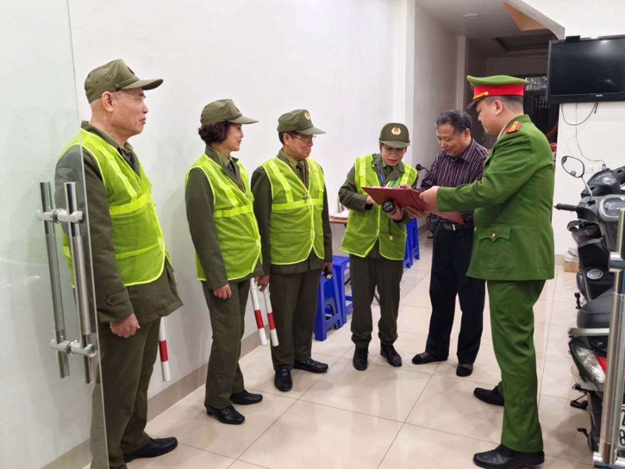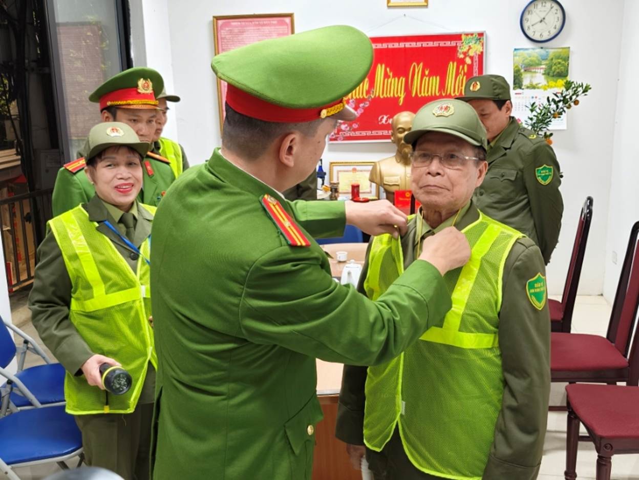 Đồng chí Nguyễn Đình Hợi - Tổ trưởng Tổ bảo vệ ANTT số 5 phường Tây Hồ chuẩn bị triển khai nhiệm vụ