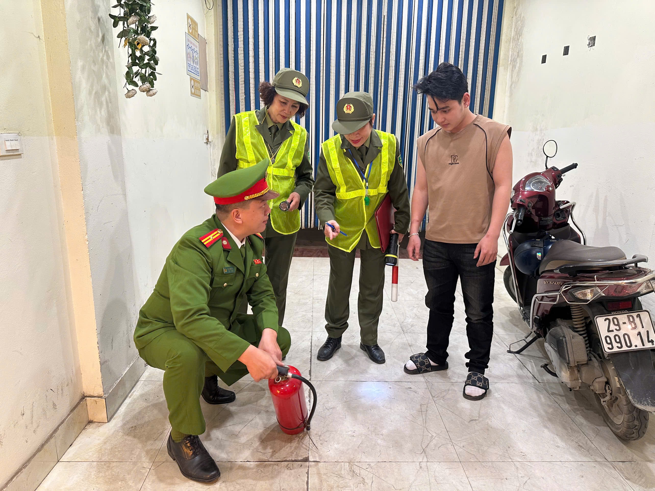 Lực lượng chức năng hướng dẫn cơ sở kinh doanh cư trú phòng ngừa hỏa hoạn.