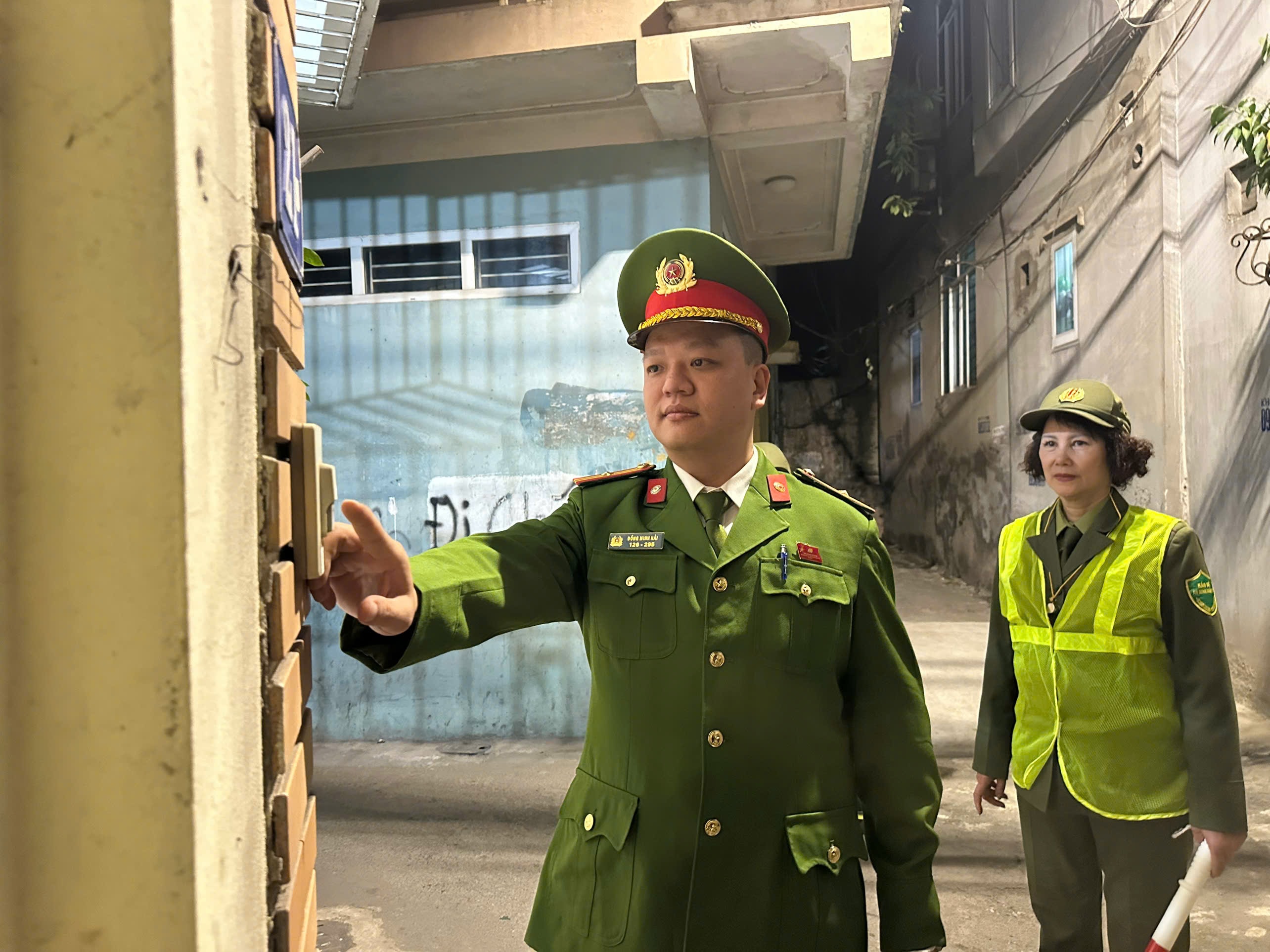 Thiếu tá Đồng Minh Hải - Cảnh sát khu vực CAP Tây Hồ và lực lượng tham gia bảo vệ ANTT tại cơ sở trực tiếp đến từng hộ gia đình, từng khu dân cư để tuyên truyền, nhắc nhở người dân.