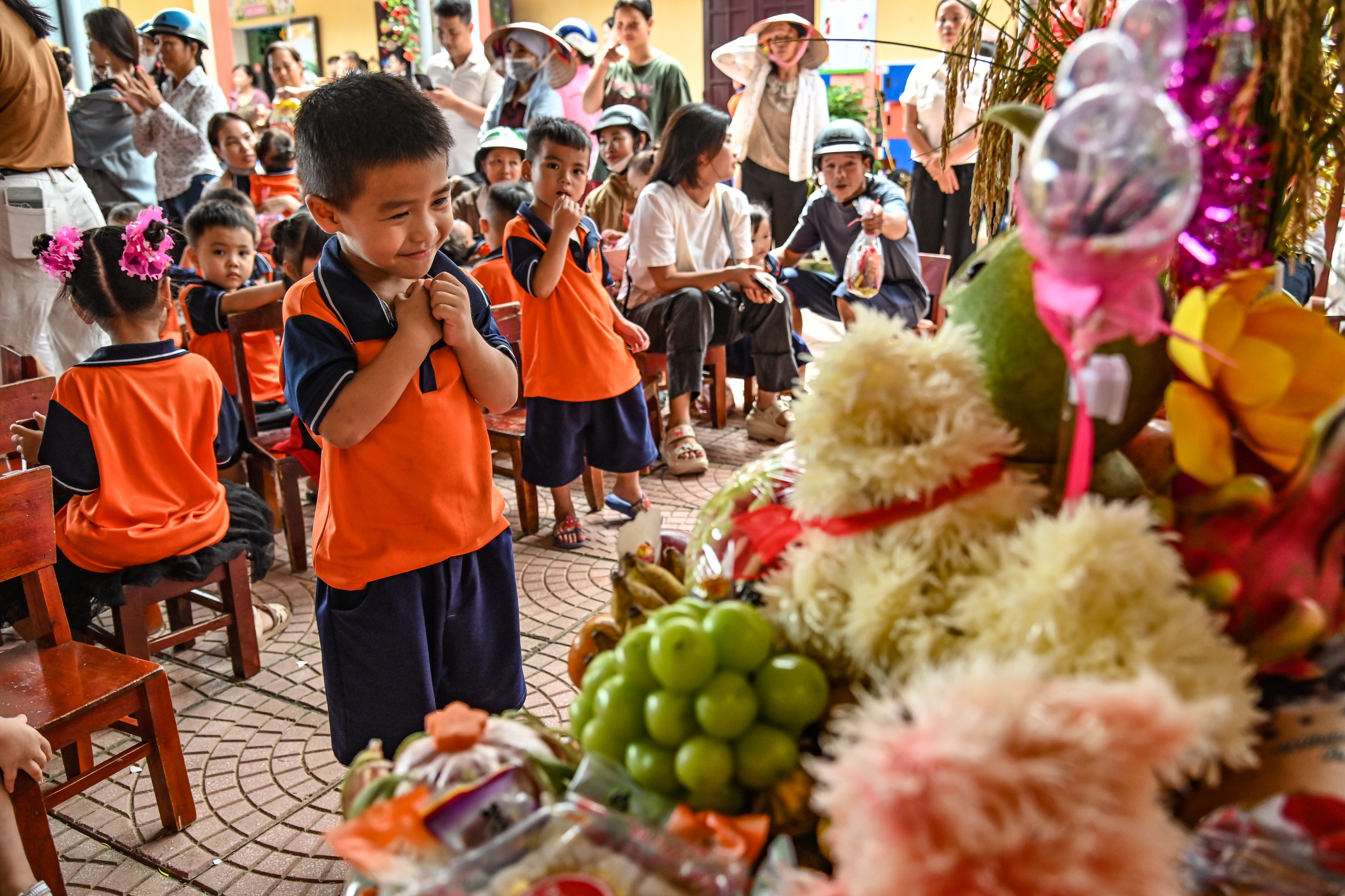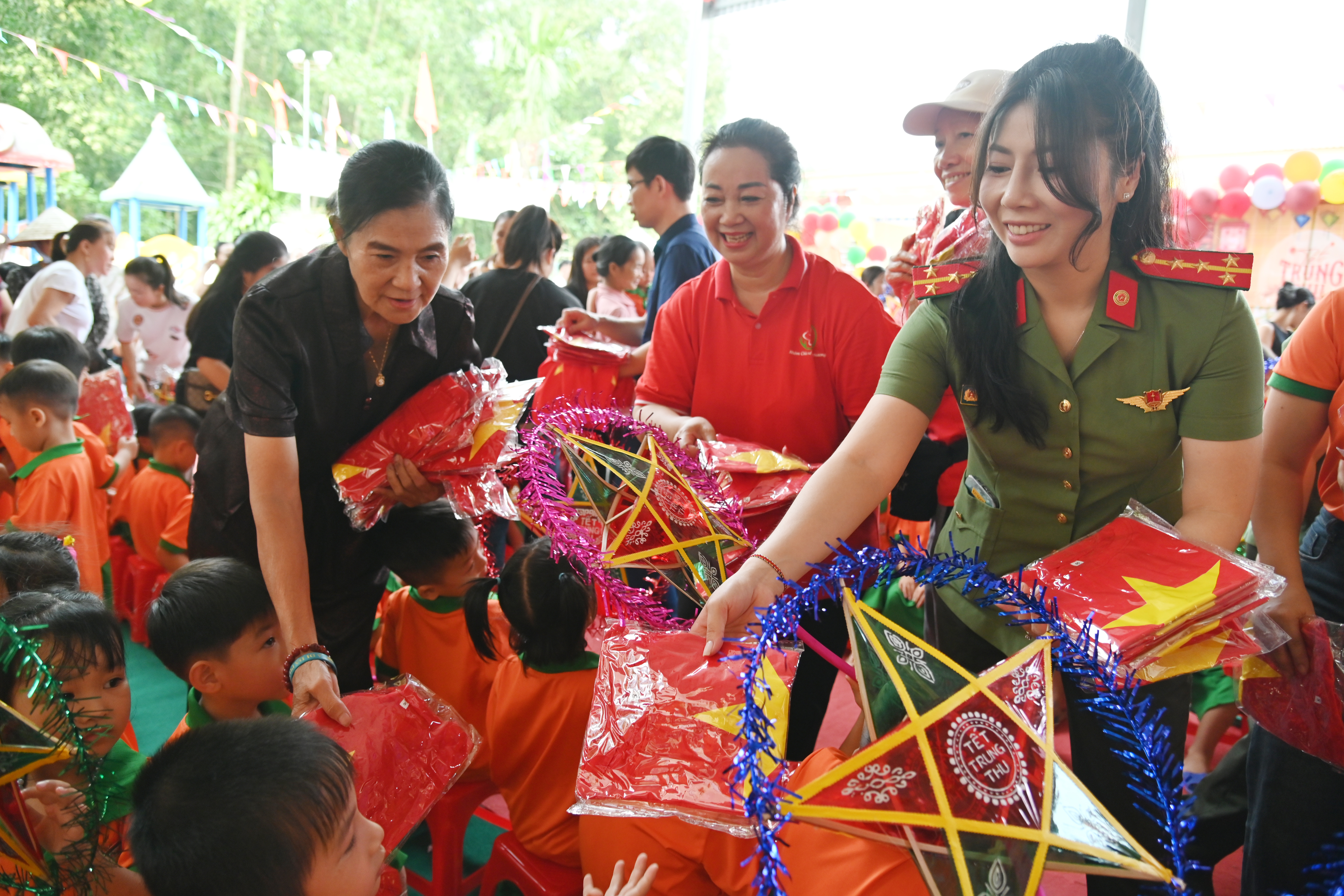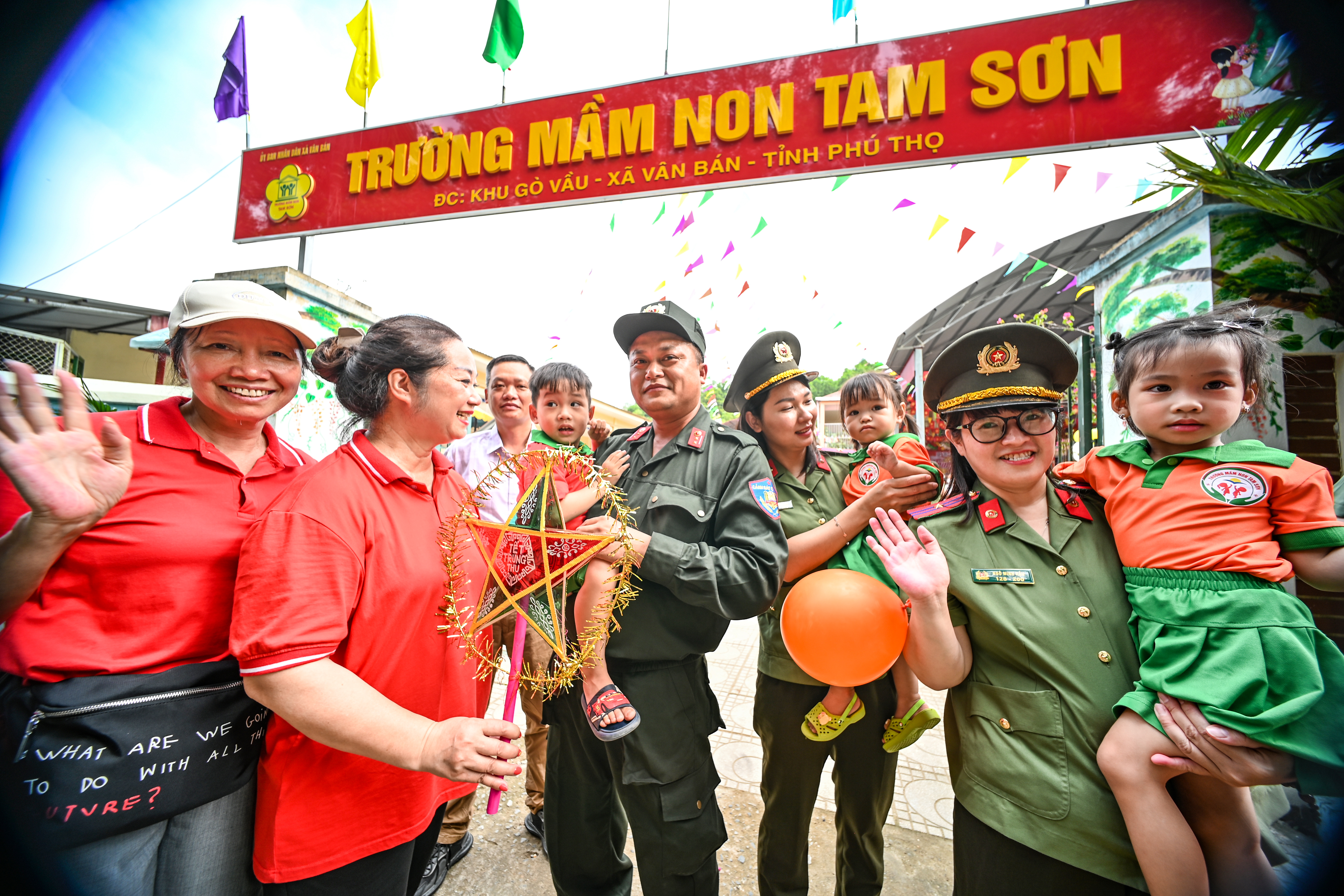 Những chiếc áo in hình cờ Tổ quốc, đèn ông sao truyền thống được trao tận tay 900 em học sinh 2 trường mầm non Tam Sơn và Phượng Vĩ, xã Vân Bán, tỉnh Phú Thọ