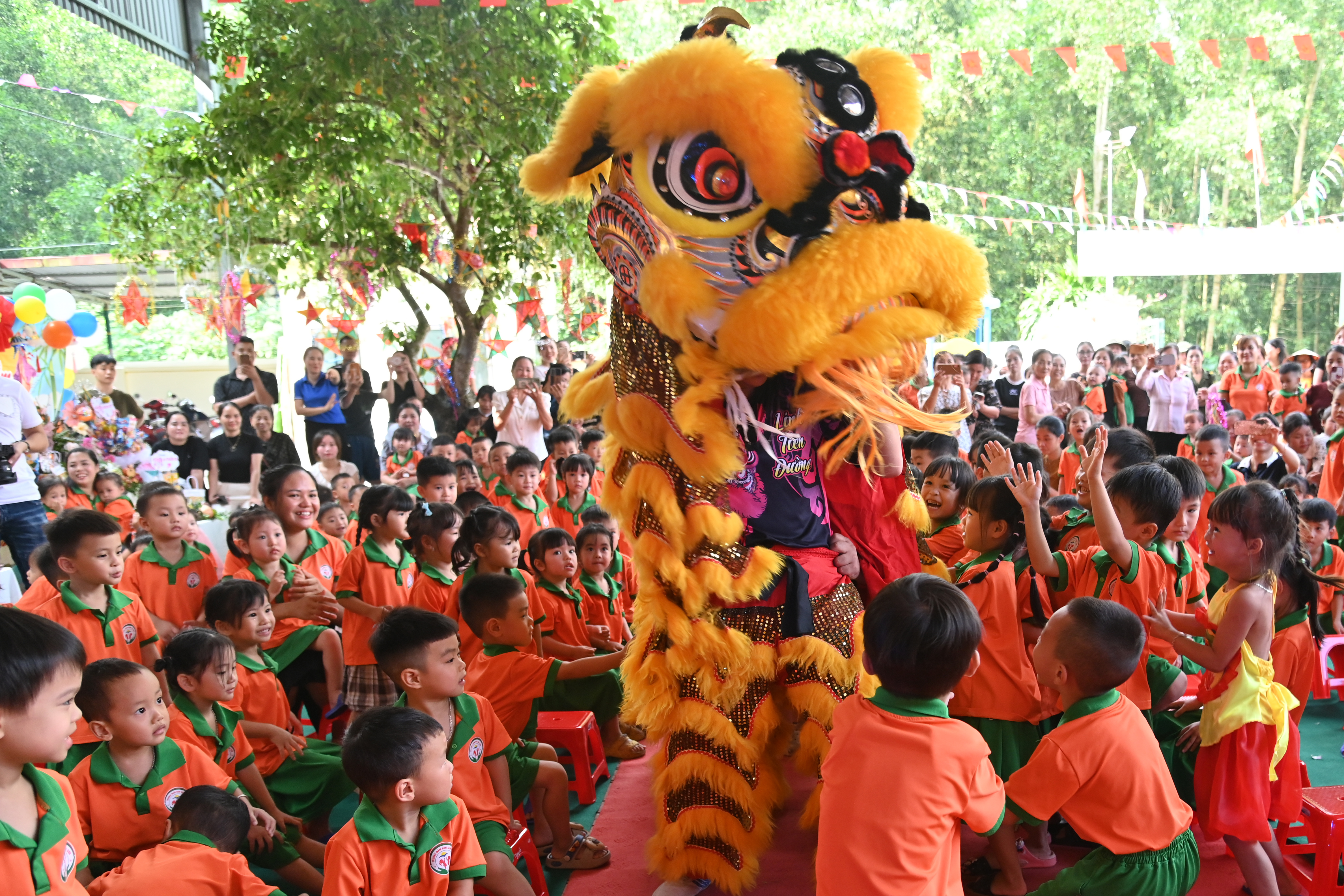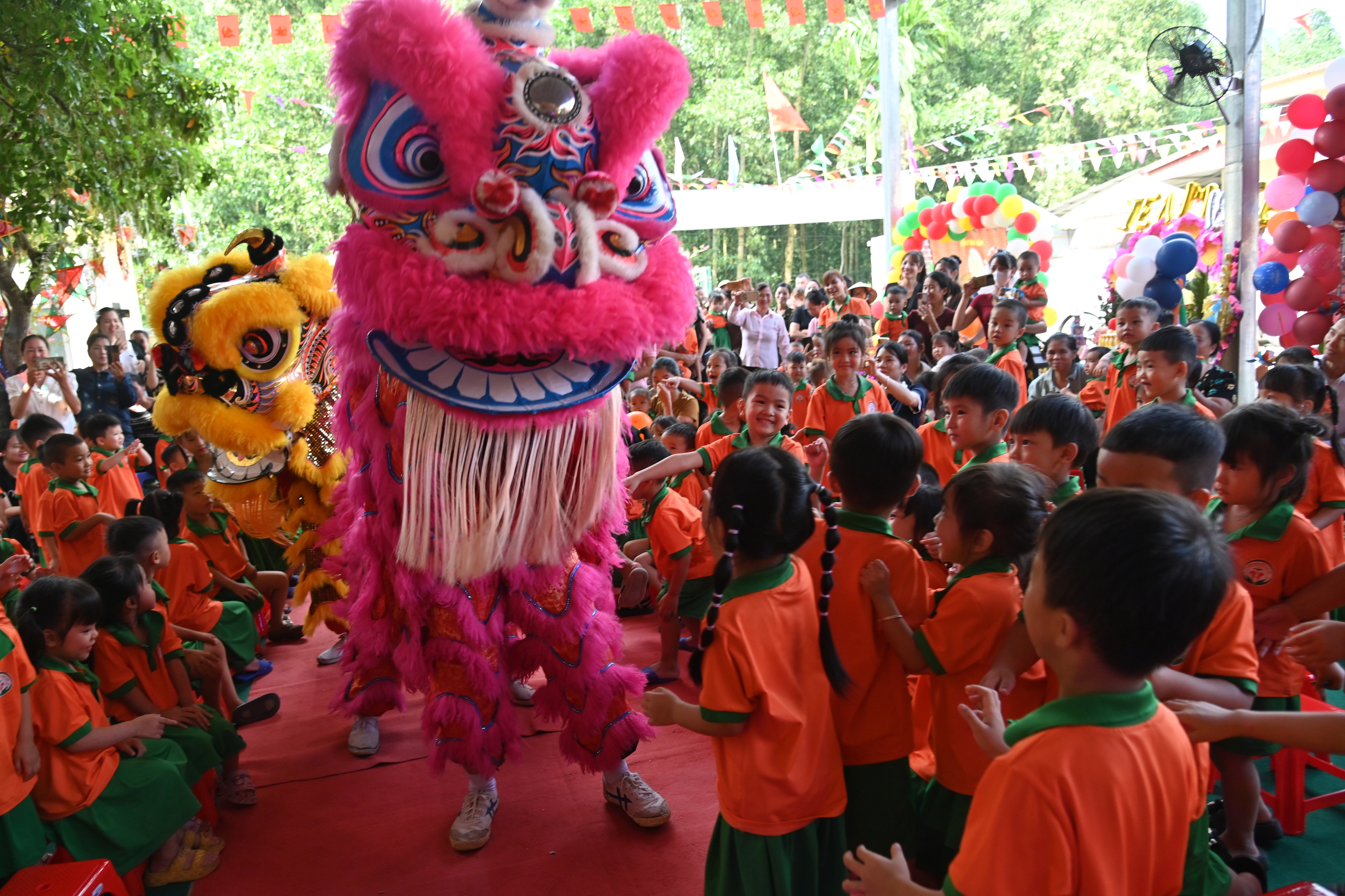 Đôi múa lân từ Hà Nội đã mang đến cho các em nhỏ những giây phút sôi nổi, khó quên.