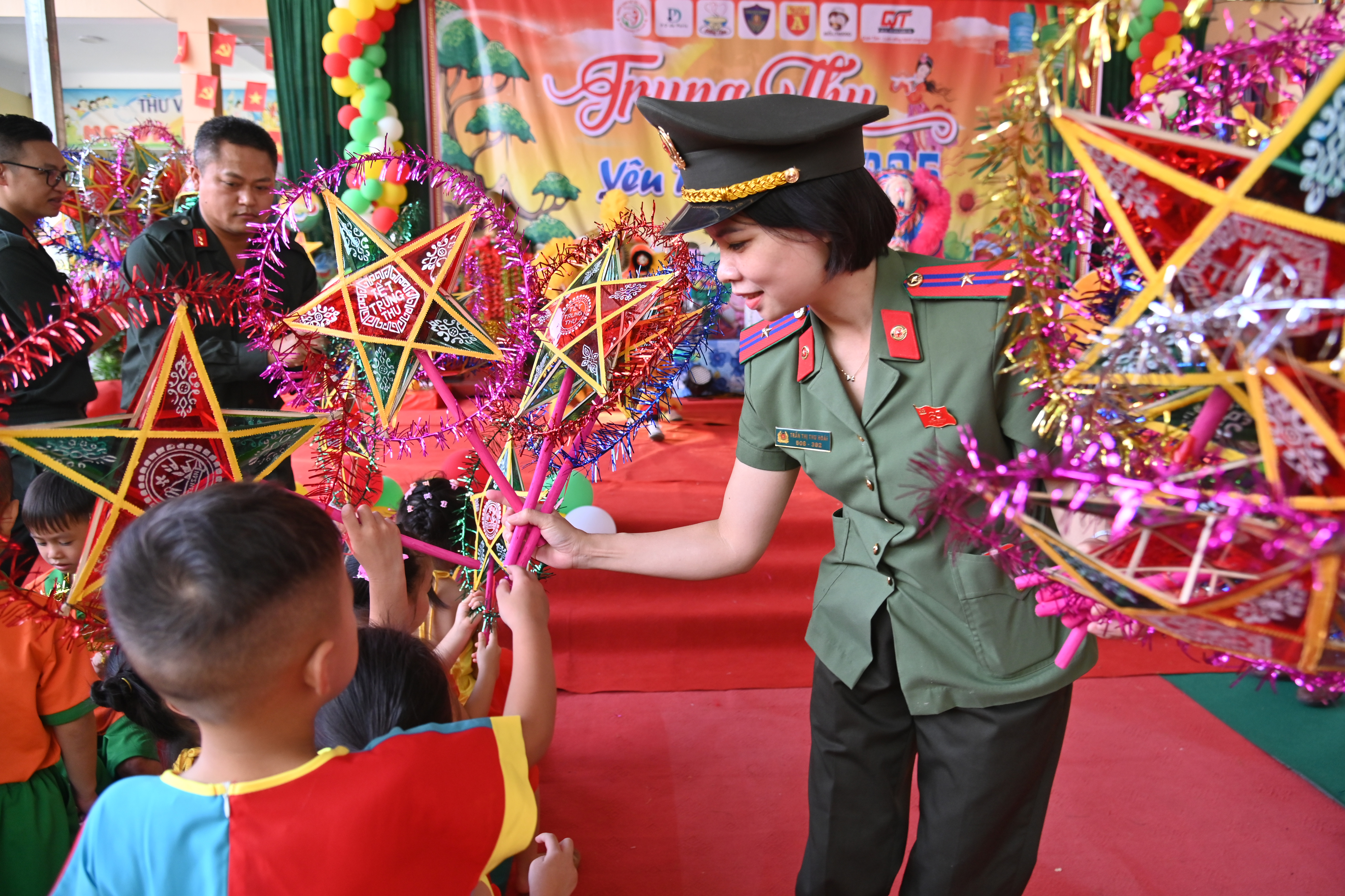 Nữ cán bộ CATP Hà Nội bên các em thiếu nhi